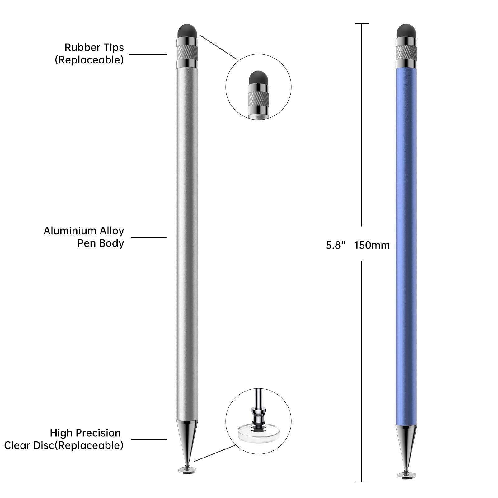 【2-in-1スタイラスペン】タブレットペン、軽量合金製、接続や充電の必要はありません、パッケージを開いて使用する準備ができて、快適な感じ、頑丈で耐久性があり、いつでもどこでもあなたのインスピレーションを簡単にキャプチャするためにそれを使用することができ、紙の上に書くようにすべてを作り、より正確な書き込み/描画/タッチ体験を与える。