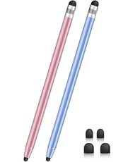 Smozer タッチパネル用スタイラスペン 2本パック 2イン1 高感度静スタイラスペン iPad、iPhone、Androidスマートフォン、タブレット、その他すべてのユニバーサルタッチスクリーンデバイス用 細字付き (ピンク/ブルー(2パック))