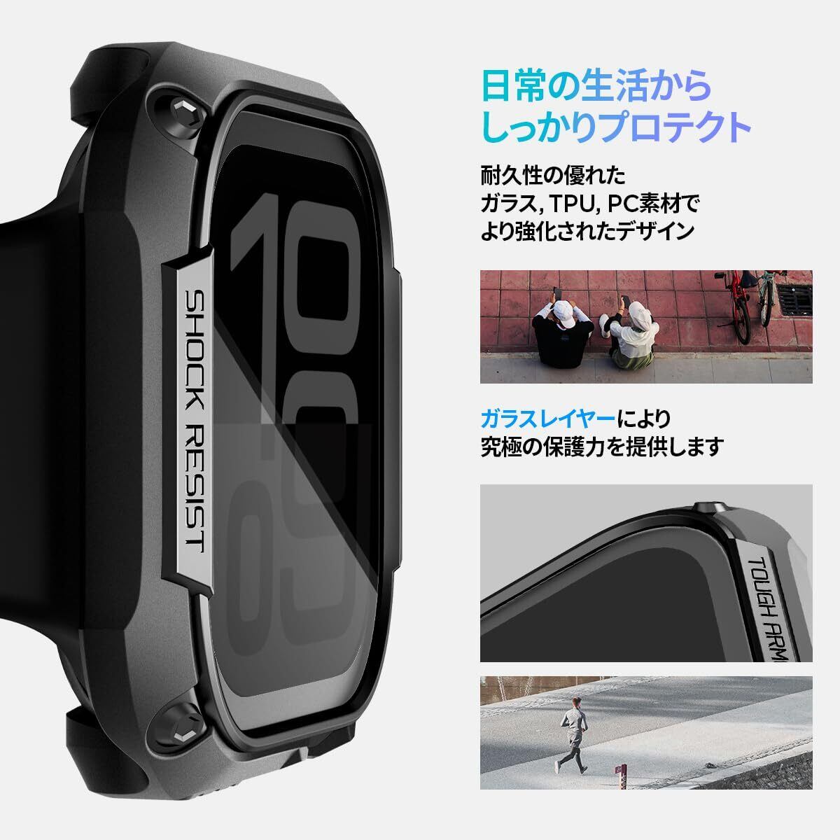Spigen Apple Watch 10 ケース 46mm AppleWatch10 対応 ガラス 一体型 米軍MIL規格取得 画面保護 耐衝撃 落下 衝撃 吸収 すり傷 防止 保護カバー タフ・アーマー ACS08603 (ブラック)