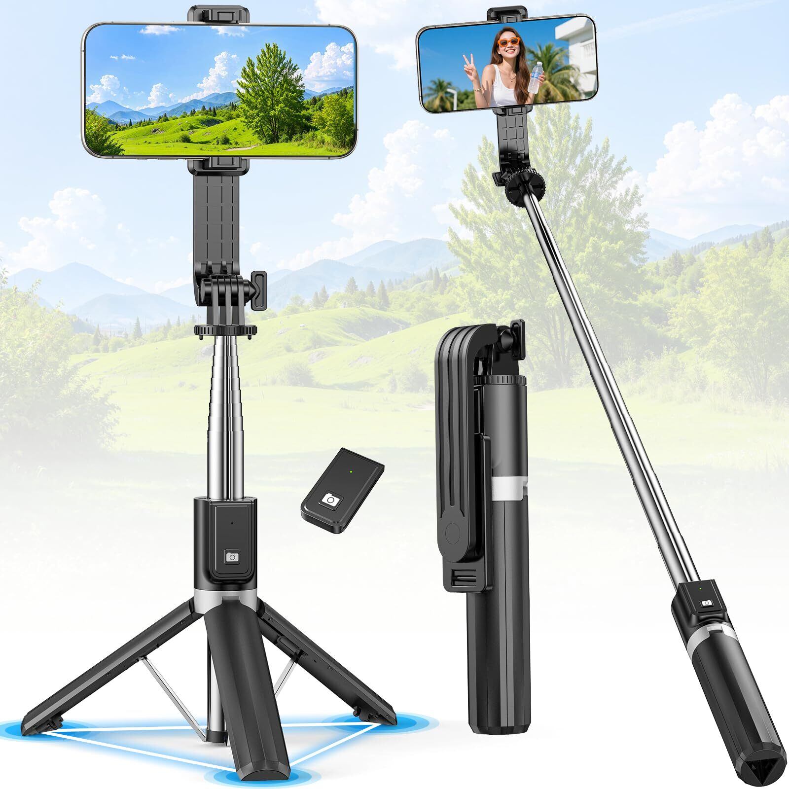 【三脚一体型&抜群の安定性】手持ちと据え置きの両方に対応した三脚一体型の設計。まさに次世代の自撮り棒。脚部には滑り止めゴムを採用し、傘型にしっかり広がる構造で屋外の不安定な地面や風のある環境でもプロのような安定した画質で撮影できるのが自慢です。9段階伸縮のアルミ合金製ロッドは耐久性も高く、長期間の使用でも安心。セルフィーや風景写真、動画撮影など様々な用途に安定した撮影が可能です。