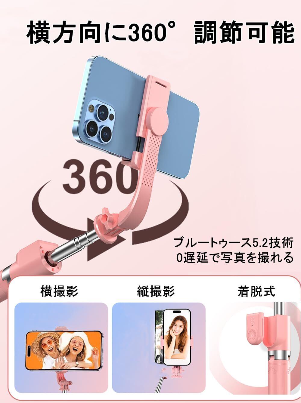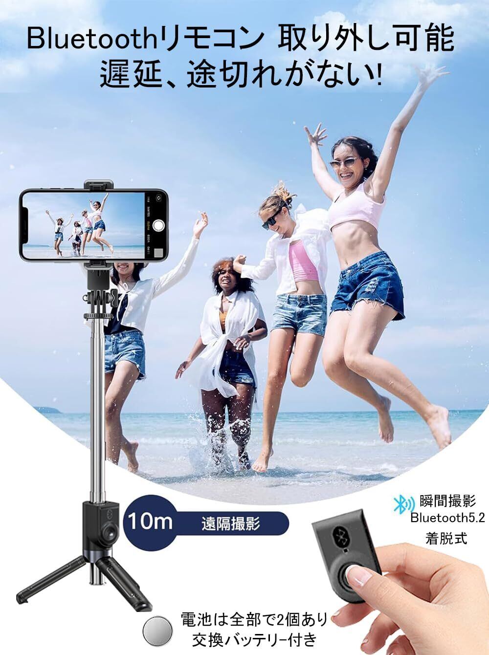 【0遅延で写真を撮れる】自撮り棒の無線リモコンは最先端ブルートゥース5.2技術を採用、通信範囲や伝送速度が大幅にアップするため、境に左右されない優れた接続安定性を実現していて、ワンタップですぐに撮れる、遅延、途切れがありません。10m遠隔撮影が対応、家族写真、一人旅など素晴らしい全身写真が実現できます。初心者にも簡単操作できる、初期接続が完了すると、セルカ棒のリモコンは電源をオフにしても設定が残ります。再度電源オンにして、自動で最後に接続されていたスマホへ瞬時接続を実現しました。ブルートゥース機能が搭載されるAndroidとiOSのスマホに対応可能です。