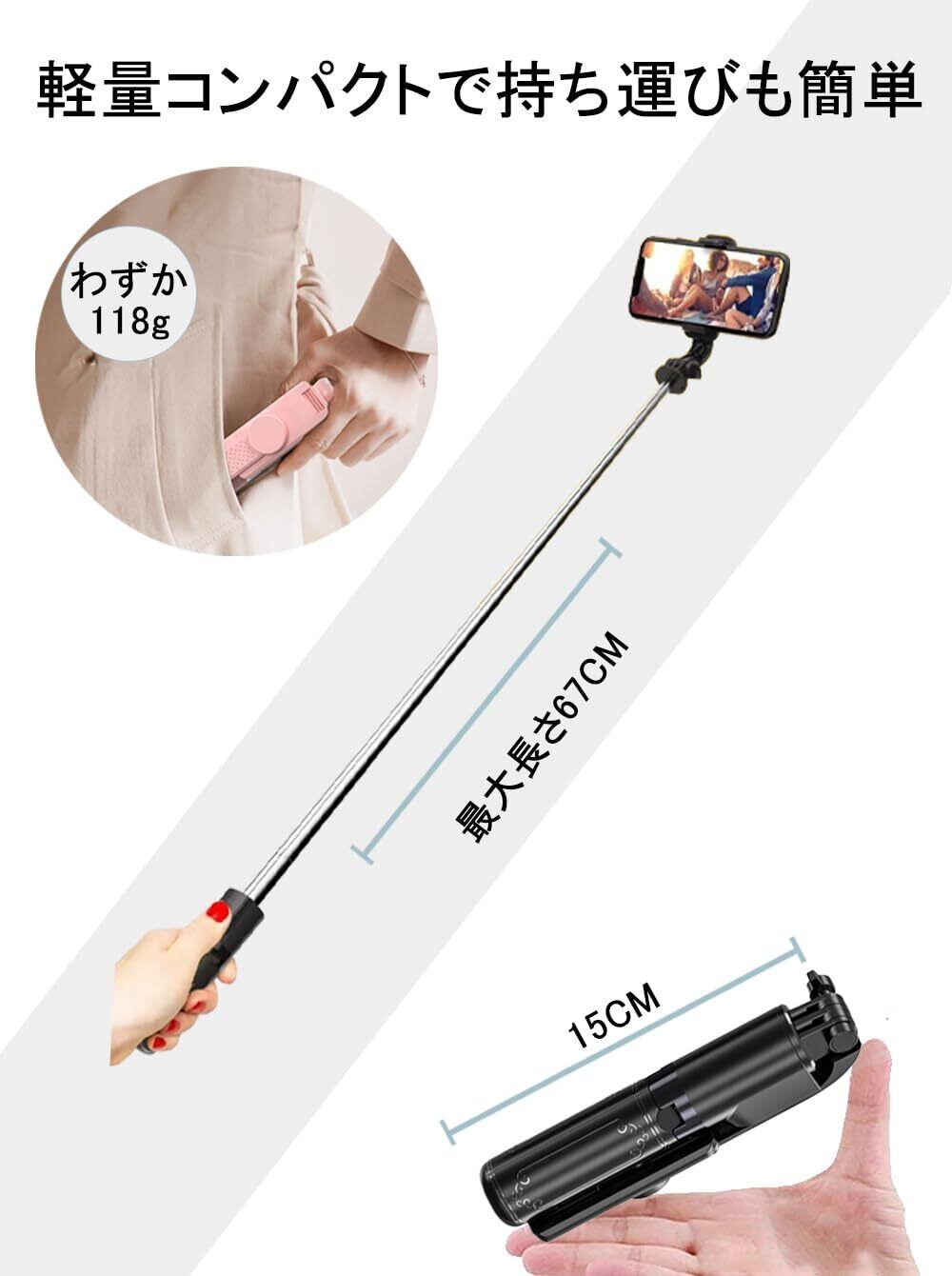 自撮り棒 スマホスタンド 三脚 長さ15cmのタイトな収納 重さわずか118グラム リモコン付き iphone & android対応 スマホスタンド スマホ セルカ棒 iphone 自撮り棒 三脚 卓上 軽量 68cm&7段階伸縮 携帯スタンド 折りたたみ式 セルカ棒 4-7インチ多機種対応 旅行/セルフィー/撮影/動画鑑賞最適 (ピンク)