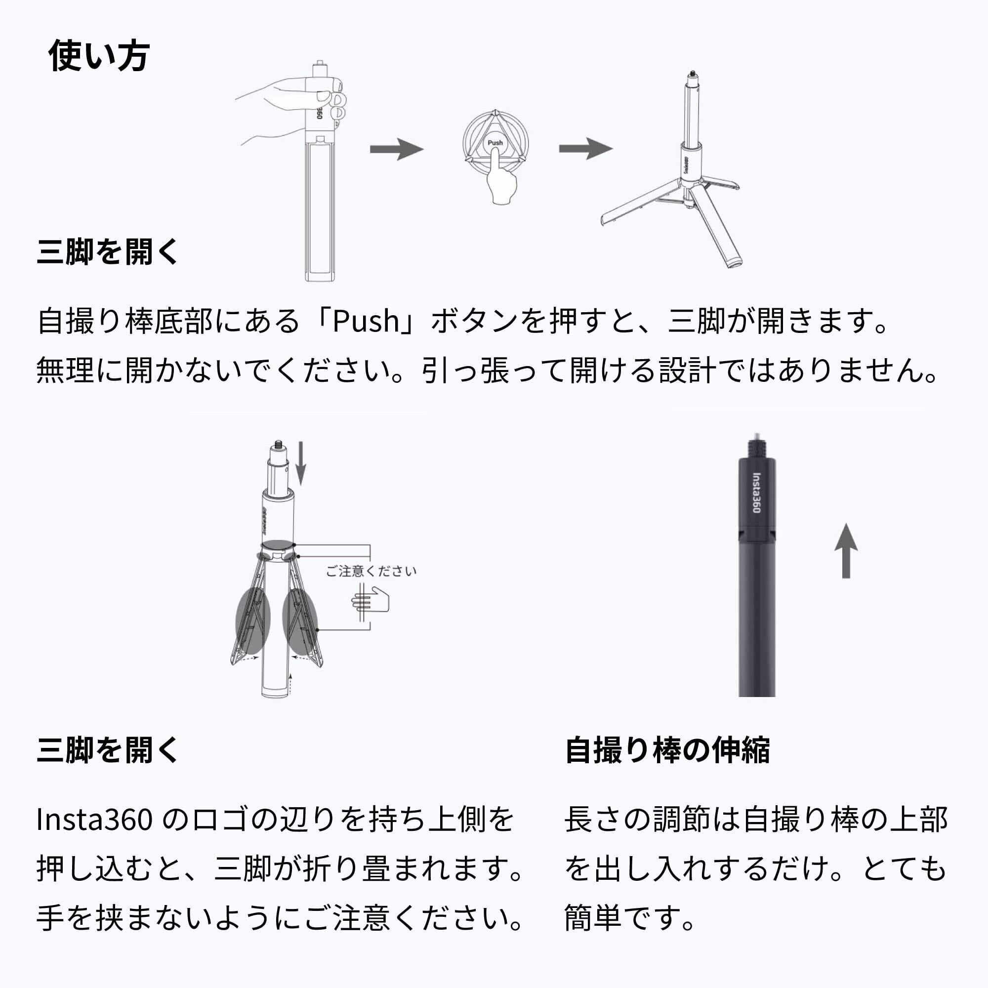 Insta360 見えない自撮り棒 + 三脚 X5 / Ace Pro 2 / X4 / GO 3S / Ace Pro/Ace/GO 3 / X3 / ONE RS 1インチ360度版 / ONE RS (ツイン/4K)対応