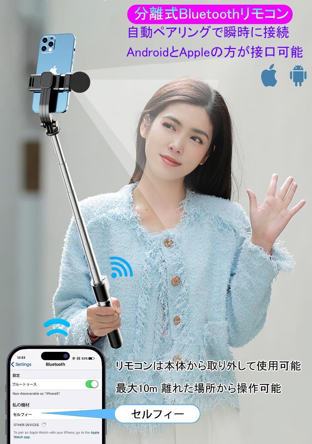 【幅広い交換性】幅7cm~10cmまで Android& Iphoneのスマホに対応さます、友達や家族とシェアしたり、今後の機種変更でも安心してお使い頂けます。固定ホルダーには傷・落下防止ゴム付きなので、しっかりスマホを固定出来ます。この自撮り棒には三脚が内蔵されており、比類のない安定性を提供し、ぐらつきやぼやけに心配することなく、撮影されたすべての写真とビデオが鮮明に安定していることを確保いたします。