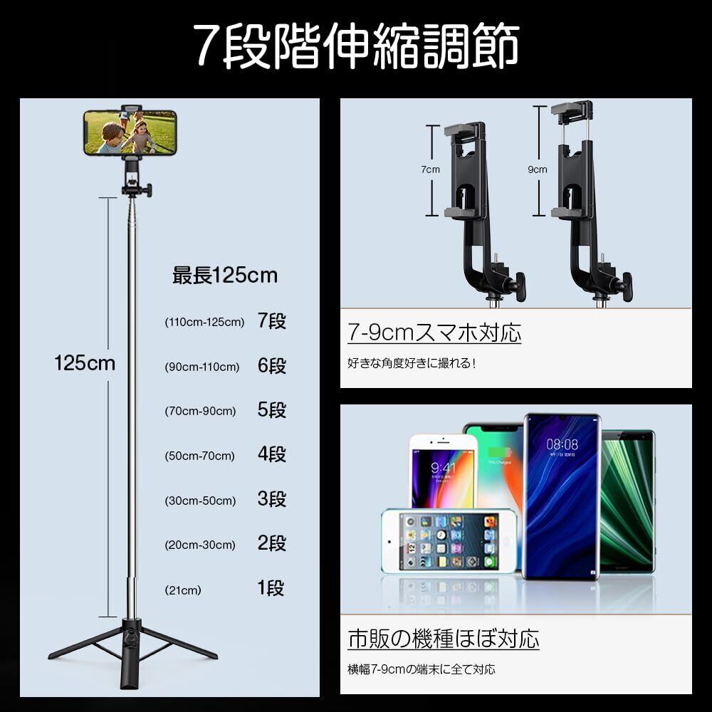 自撮り棒 【7段階伸縮・360°回転・安定性アップ】 スマホスタンド 三脚 スマホ じどり棒 軽量 iphone セルカ棒 手ブレ補正 スマホ三脚 コンパクト Bluetooth リモコン付き 携帯スタンド iphone&android対応 gopro対応 デジカメ 自撮り/撮影/ビデオ通話/旅行/セルフィー/生ライブ配信最適 (ブラック)