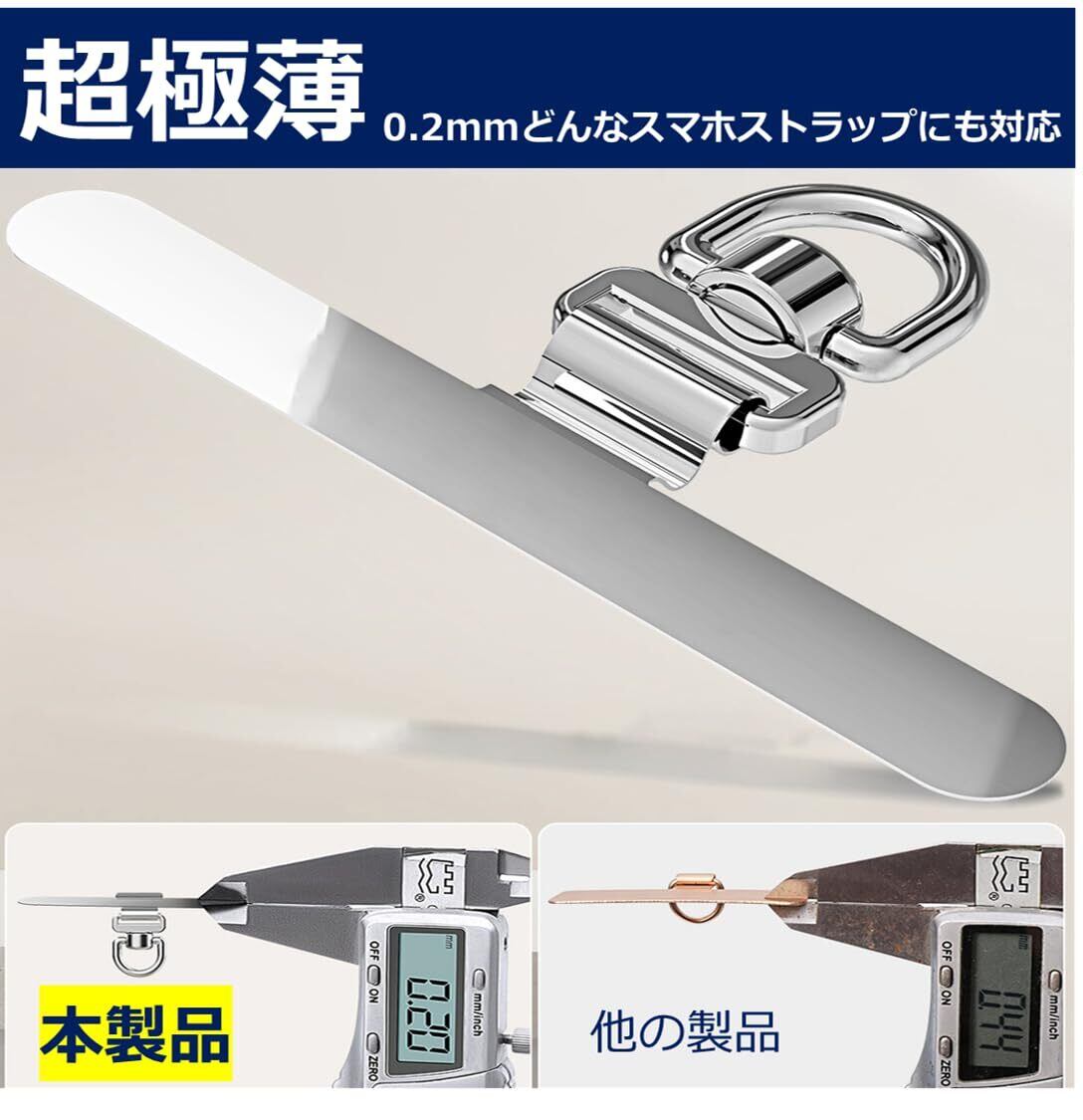 [aerix] スマホストラップ ストラップホルダー 【極薄0.2mm・360°旋回式・浮きなし曲がれ設計金属製】 タグパッチ ステンレス鋼 頑丈 薄型金属ステンレス製 スマホ ショルダー ストラップ 落下防止 携帯ストラップ スマホショルダー 全機種対応