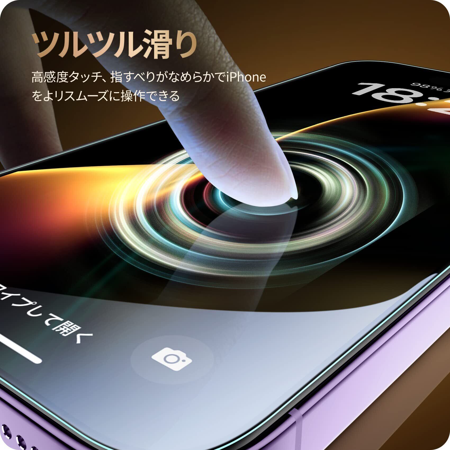 【高透過率】高い透過率のため、iPhone14Proの液晶画面を守りながらスクリーン本来の美しい画質を損なわず、お楽しみいただけます。画面上の操作も違和感なくスムーズに行えます。