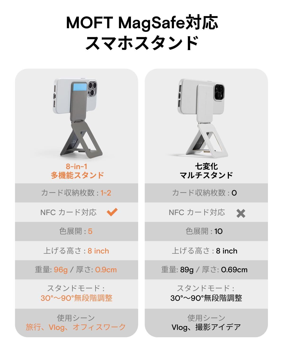 MOFT【公式直営店】モフト スマホスタンド 8-in-1多機能スタンド カードケース付き MagSafe対応/NFC/Suica/タッチ決済対応|iPhoneシリーズ・全機種対応|強力磁力&アイアンリング付き|MOVAS™素材|薄型・軽量・折りたたみ式|多角度調整・三脚 携帯スタンド|自撮り・動画視聴・ウェブ会議・ドラマ鑑賞・記録撮影・旅行に最適(カード収納)