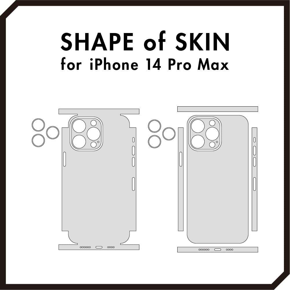 【注意】本製品はアイフォン14プロマックスに貼りつけるシールタイプの商品です。商品画像内の機器本体は付属いたしません。スキンシールの貼付け作業時にドライヤーを利用する箇所がございます。本製品を装着したまま純正アクセサリ「Magsafe」をご利用いただけます。