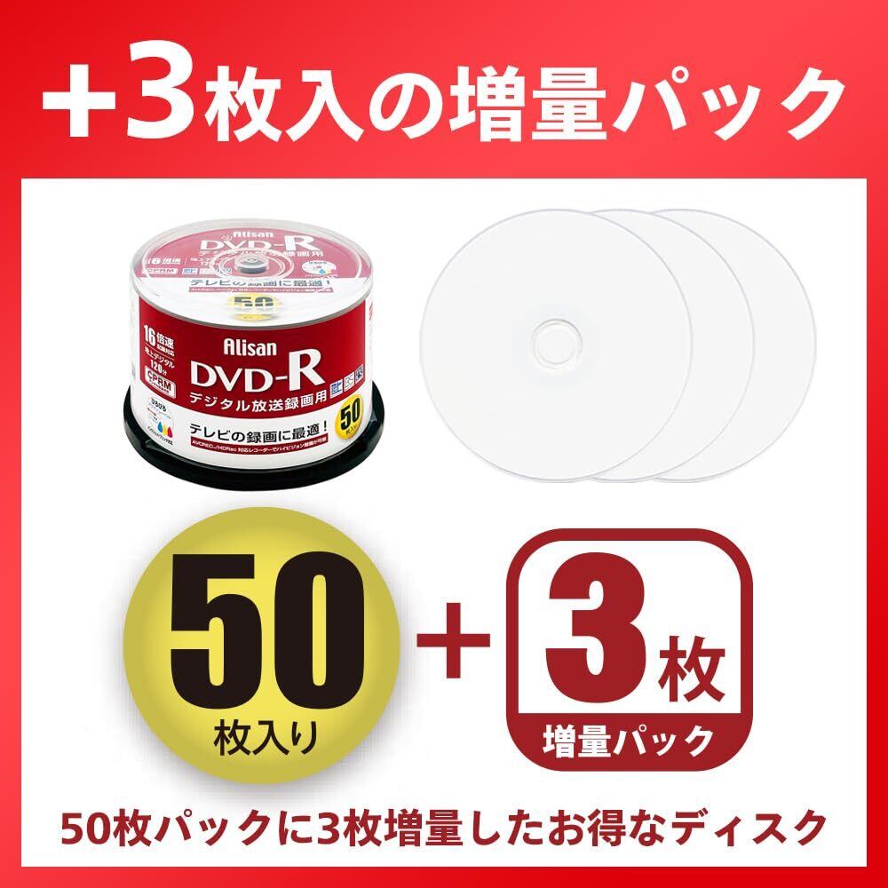 Alisan(アリサン) DVD-R 1回録画用 CPRM 4.7GB 53枚(50枚+3枚増量) スピンドル 片面1層 1-16倍速 ホワイトレーベル AL-DVDR16XCPRM53SP