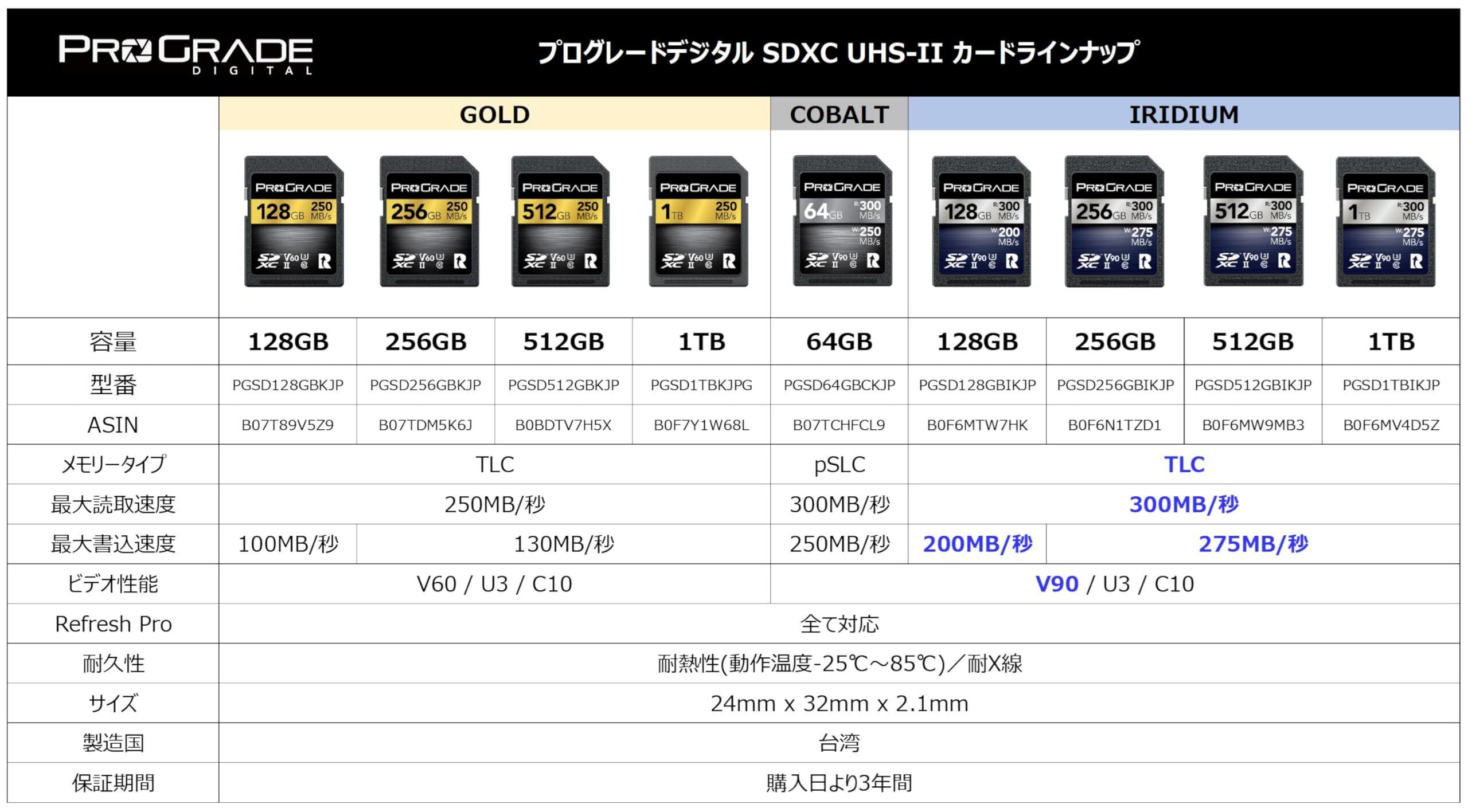 モデル名 ProGrade Digital SDXC UHS-II V60 GOLD 128GB メモリーカード