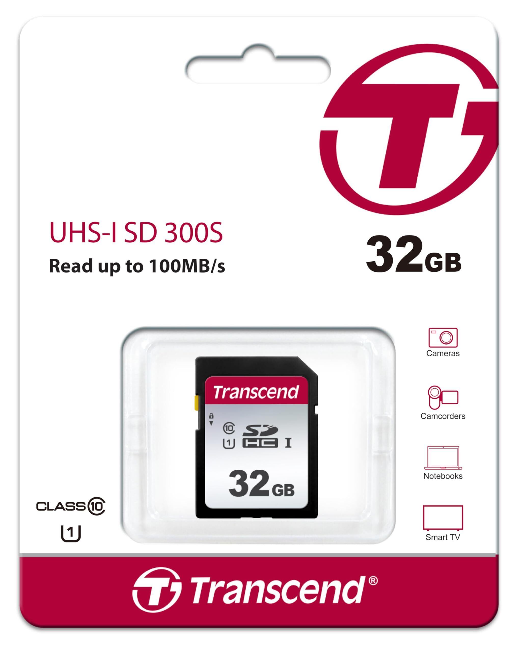 トランセンド SDカード 32GB UHS-I U1 Class10 (最大転送速度100MB/s)【データ復旧ソフト無償提供】TS32GSDC300S-E