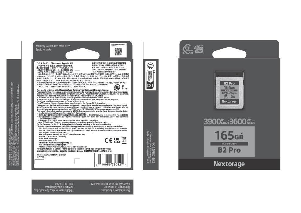 Nextorage 日本メーカー CFexpress 4.0 TypeB 165GB VPG400 最大読み出し速度3900MB/s 最大書き込み速度3600MB/s pSLCフラッシュメモリ搭載 ハイエンドモデル 超高速連写 RAW撮影 4K/8K録画 NX-B2PRO165G ネクストレージ メモリーカード