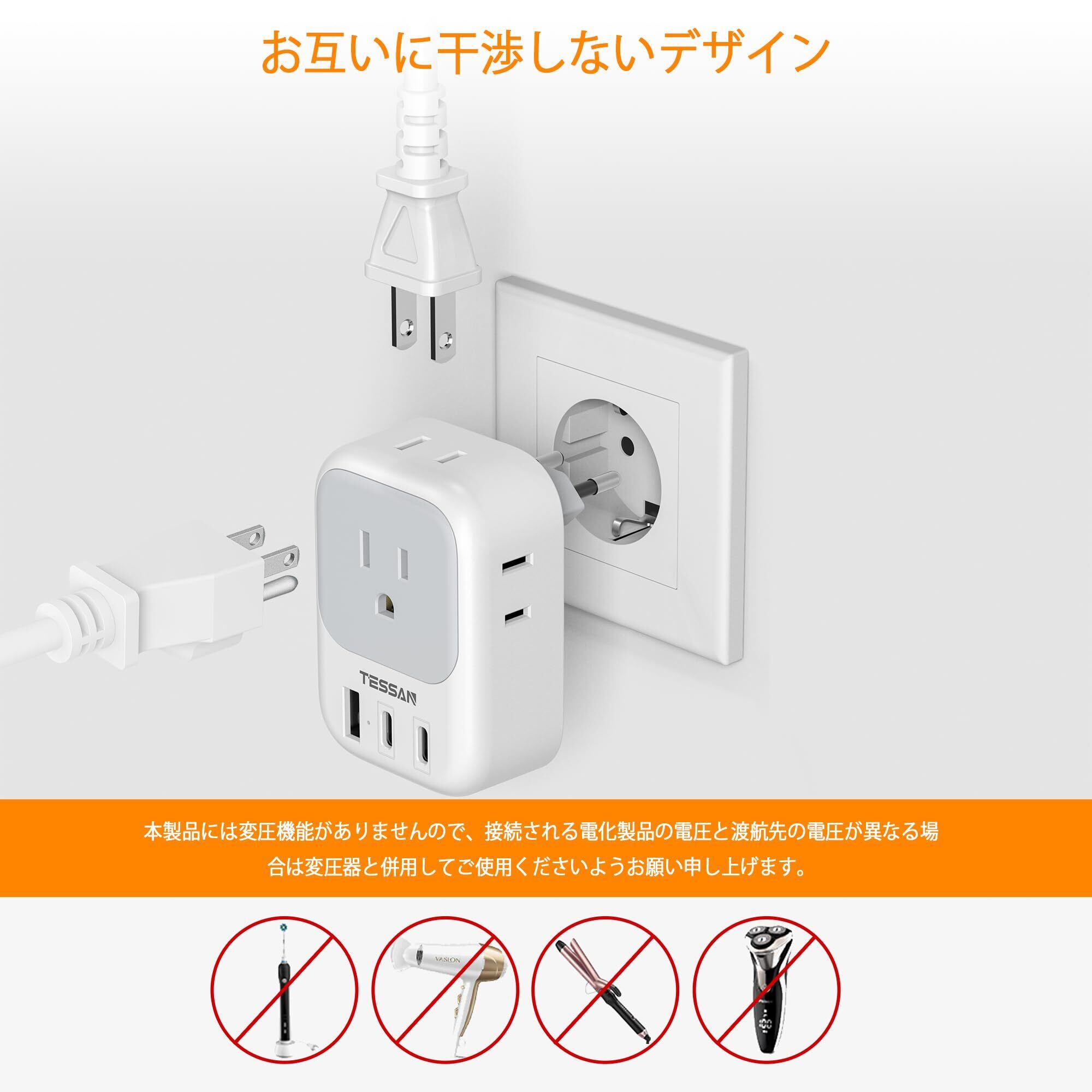 変換プラグ cタイプ 韓国 TESSAN 海外コンセント変換プラグ type-c付き 1台7役 変換器 電源変換アダプター ドイツ ベトナム タイ ヨーロッパ イタリア 海外旅行 便利グッズ