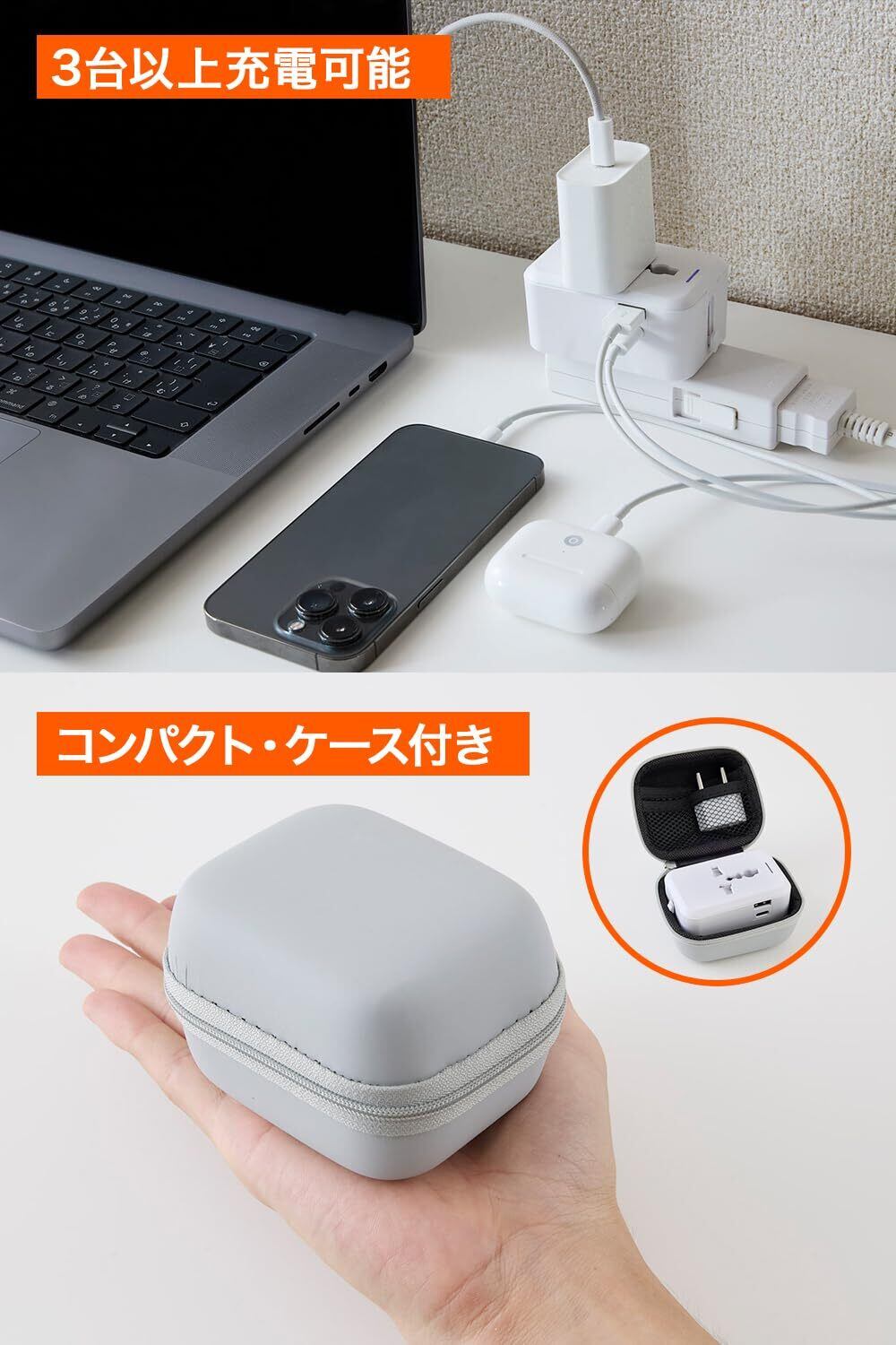 【3台以上充電可能】USB2ポート(USB-A×1・USB-C×1)、プラグ差し込み口から、3台以上の機器を同時に充電が可能。パソコン、スマホ、イヤホンもこれ1つで充電ができます。