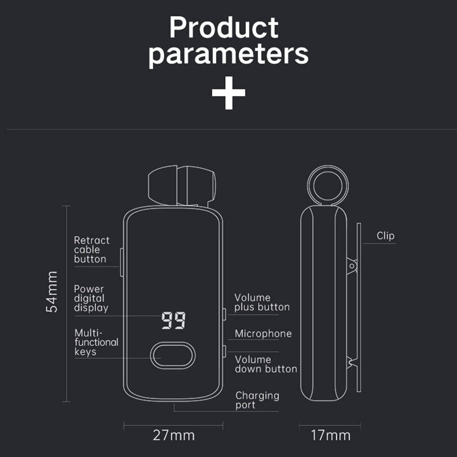 Docooler クリップオンステレオヘッドフォン、デジタルディスプレイ高速充電、ポータブル シングル ヘッドセット ヘッドフォン イヤホン インイヤー ビジネス イヤホン、クリップオン振動ハンズフリー通話スポーツ、アウトドア、ビジネスに最適