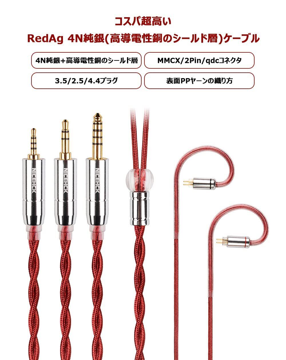 NICEHCK RedAg 4N単結晶純銀 イヤホンリケーブル 高導電性銅のシールド層 第2世代純銀ケーブル 0.78 2Pin 3.5mm プラグ 金属製コネクタ 着脱式 hifiリケーブル バランス 交換ケーブル アップグレードケーブル 1.2m DIYイヤホンのアクセサリ 音質改善 (0.78 2Pin 3.5mm)