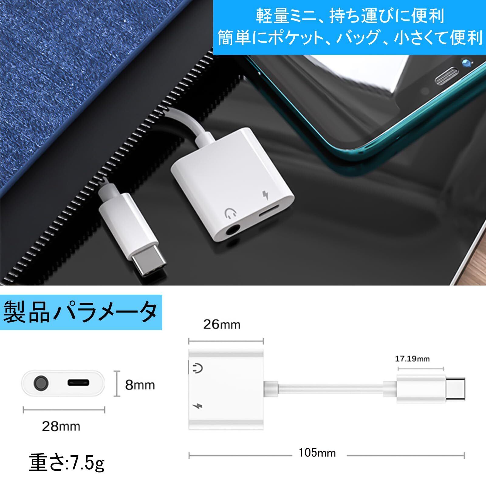 Type-C to 3.5mm phone 2in1変換イヤホンジャック 【2025新設計】 30W急速充電同時音 通話可能音楽調節 搭載16bit/48KHz Hi-Fi音質 イヤホン充電 リモコン通話 Android/Pad/PadPro / phone15 / 15pro /16/16pro windows/Type Cなど機器に適用