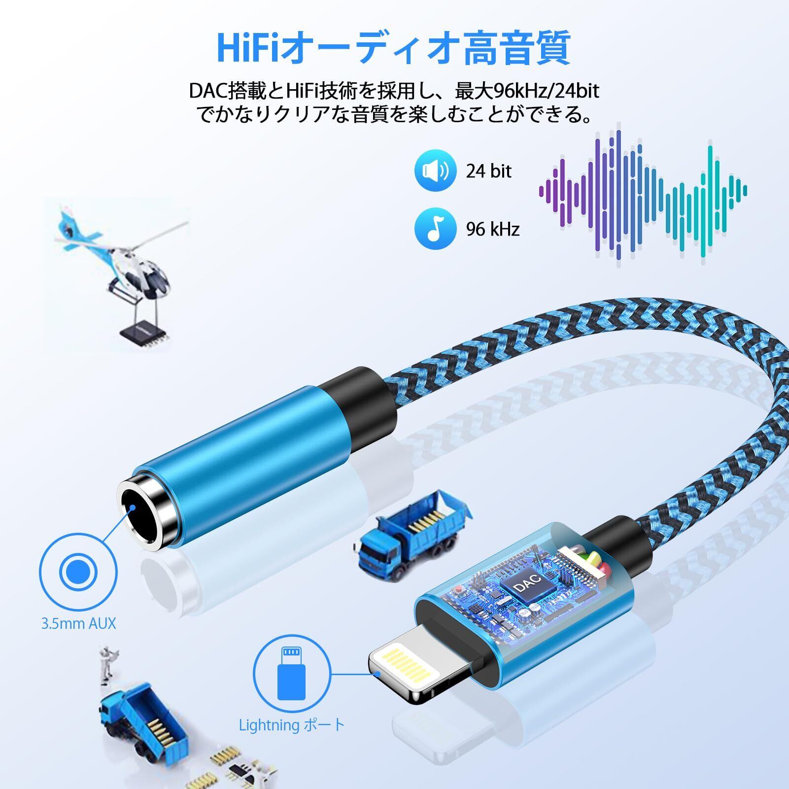 GAEF iPhone イヤホン ジャック HIFI音質 & MFi認証 イヤホン 変換 ライトニング ハイレゾ 3.5mm Lightning 変換ケーブル 高耐久性 ナイロン編み 18cm アイフォン 変換アダプタ 音楽再生/音量調節対応 iPhone用 イヤホンオーディオ アダプター IOS対応 iPhone 14/14Pro/13/12/11/XR/8 など ブルー