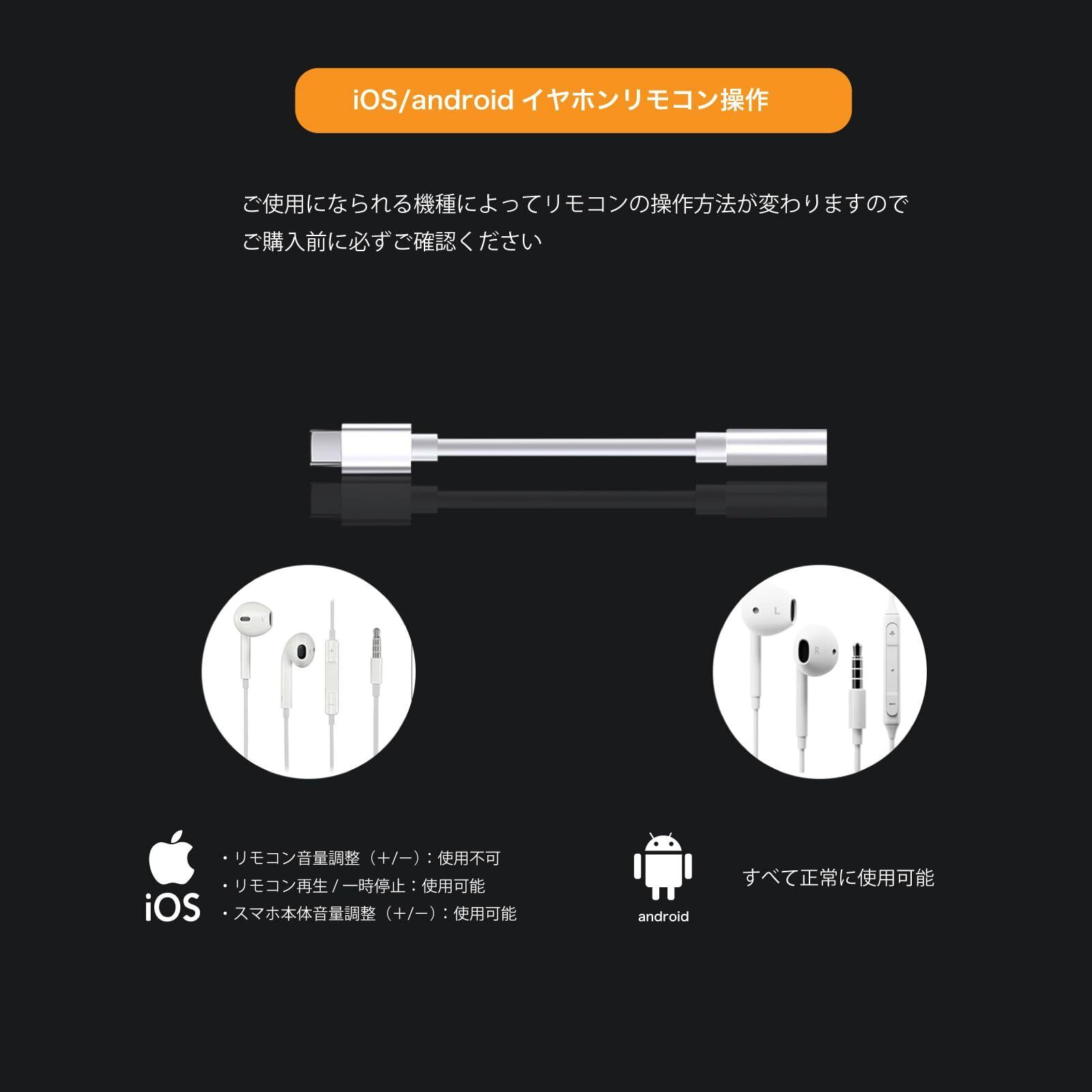 【Type-C全機種対応】 タイプC イヤホンジャック 変換 アダプター USB Type-C to 3.5mm DAC搭載 24bit/48KHz対応 通話/音量調節/音楽再生
