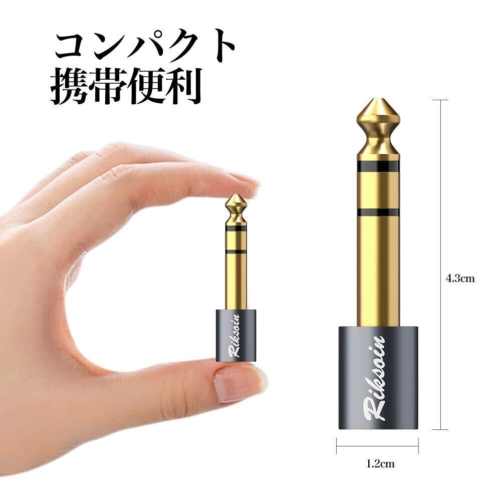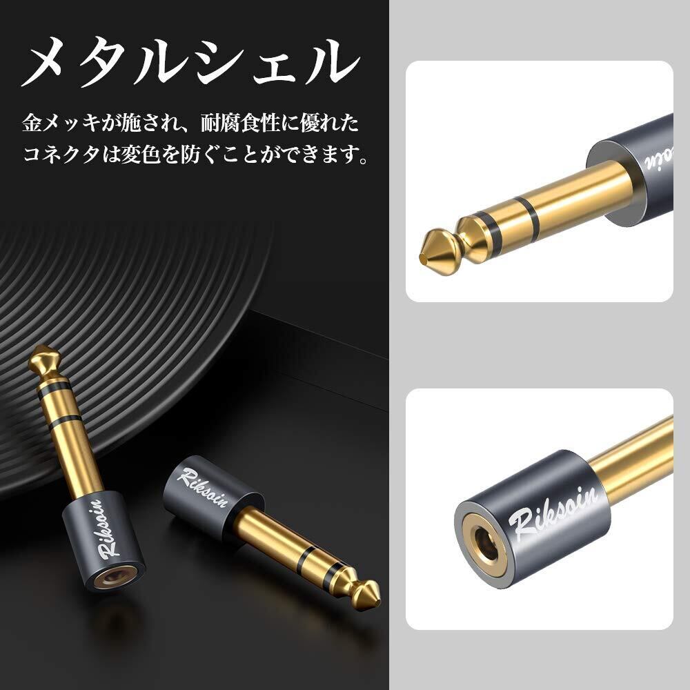 3.5mm ⇒ 6.35mm 変換 プラグ RIKSOIN (1個) ステレオミニプラグ (メス) ⇒ ステレオ標準プラグ (オス) イヤホンジャック 変換 24K金メッキ ヘッドホン、アンプ、電子ピアノ等に適用