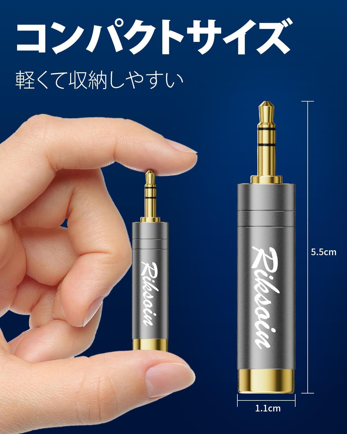 6.35mm→3.5mm変換プラグ、RIKSOIN(1個セット)ステレオミニプラグ(メス)→ステレオ標準プラグ(オス)イヤホンプラグジャック変換、24K金メッキ、電子ピアノ、ヘッドホン、アンプ用
