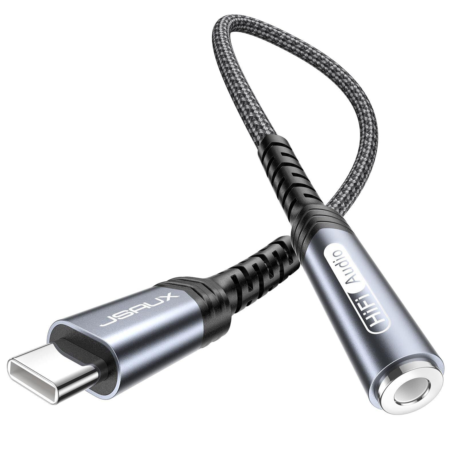 JSAUX イヤホンジャック 変換 タイプC DAC搭載 Hi-Fi音質 Type C イヤホン変換アダプタ 音量調節/通話/音楽 ナイロン編み USB C-3.5mm 変換iPhone 16/Pro/Max/Plus iPhone 15 シリーズに対応、iPad Samsung S23 S22 Ultra Pixel Type Cデバイスなど対応