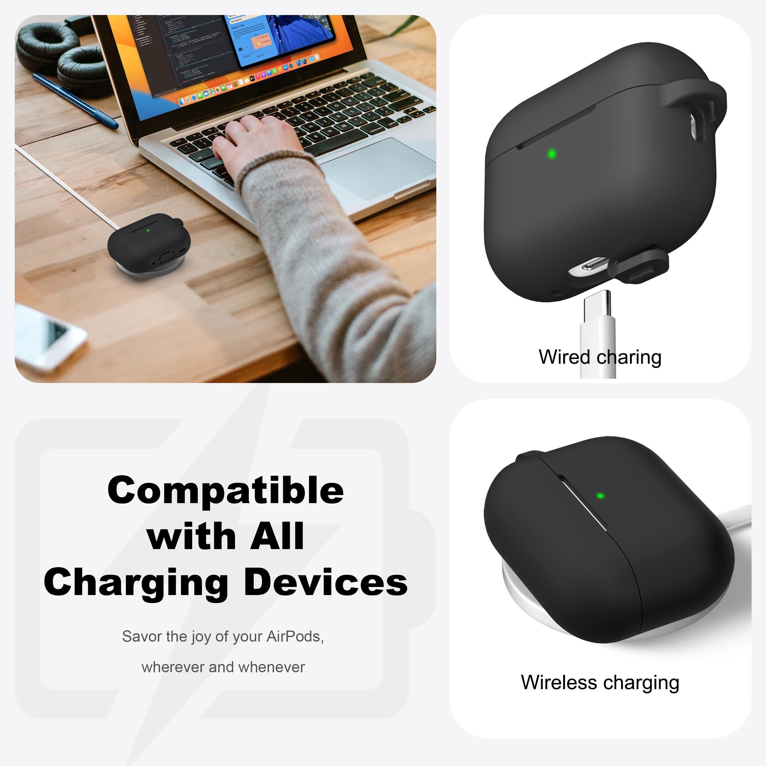 互換性とパッケージ: Apple AirPods Pro 第2世代/第1世代 2023/2022/2019 充電ケースのみ。パッケージにはシリコンケース x 1、ケースキーチェーン/カラビナ x 1、クリーニングキット x 1が含まれます。AirPods Pro 第2世代充電ケースは含まれていませんのでご注意ください。