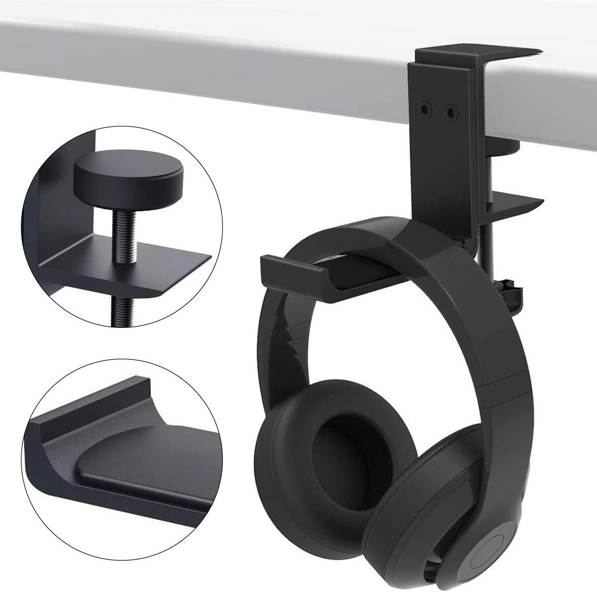 Odowalker 折り畳み式ヘッドホンスタンド テーブルフック 折りたたみフック デスクトップスタンド テーブルフック アルミ合金製 ヘッドホンハンガー ミニ六角レンチ付き ヘッドセット ハンガー (ブラック)