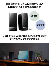 USBデジタル接続で、手軽に高音質再生:PC へのプラグ&プレイで今すぐ使えるUSB Type-A端⼦のあるPCにつなぐだけで、すぐに使⽤することができます。USBから給電されるためコンセントは不要。⾳楽を聴きたいそのときに、今すぐ使えます。また、有線接続のため、⾳が遅れて聴こえるような⼼配もありません。