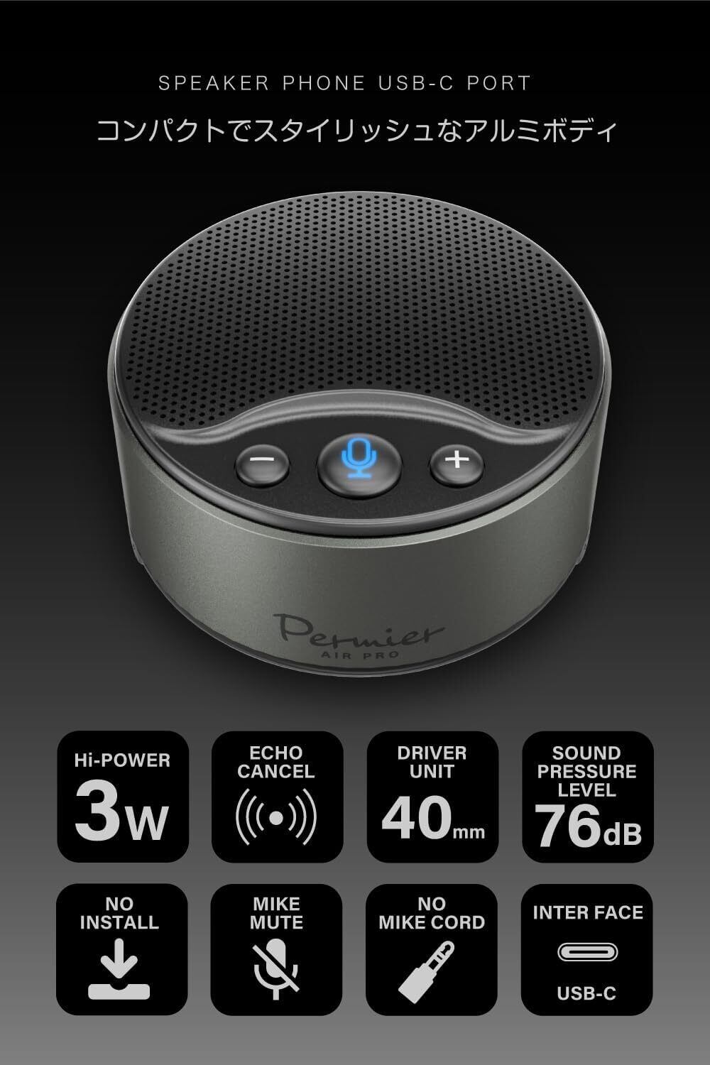 多摩電子工業 Permier AIR PRO パソコン用スピーカーフォン「PR-SK95CK」 USB-C接続・着脱式(USBケーブル付) Web会議 リモートワーク用 法人・個人事業主にも最適 対応OSWindows10以降およびMac OS X以降