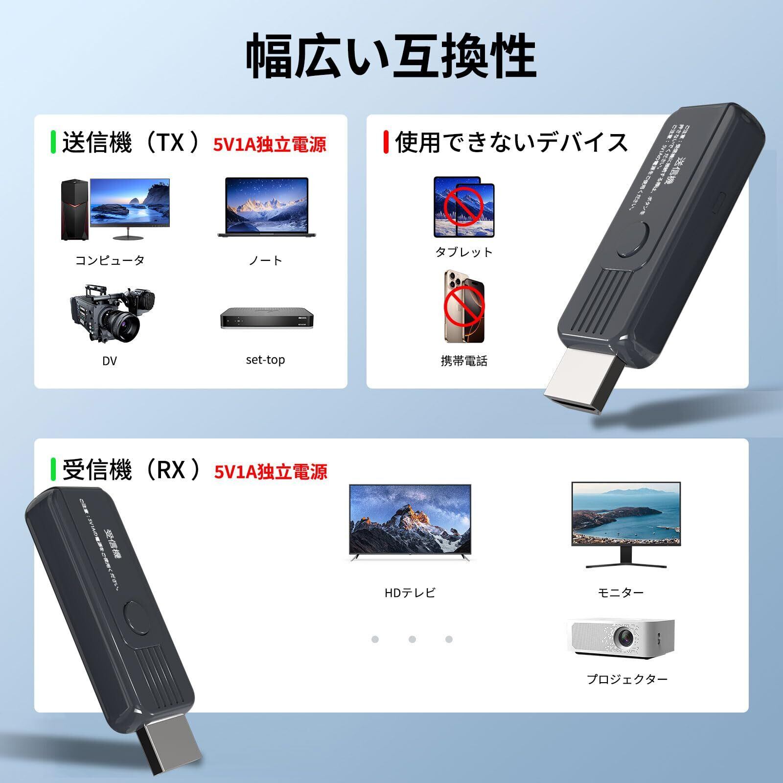 【幅広い互換性】この無線HDMI送受信機セットはほとんどのHDMI 出力デバイス、PC、Mac、テレビボックス、カメラから、プロジェクターとモニターなどへ、高画質な映画、テレビ番組、ビデオ、プレゼンテーションをワイヤレスに伝送することができます。会議室のミーティング、ホームエンターテイメント、マルチメディア教育用途に最適な選択肢です。ご注意:送信機はスマホ、タブレットはサポートしていません。