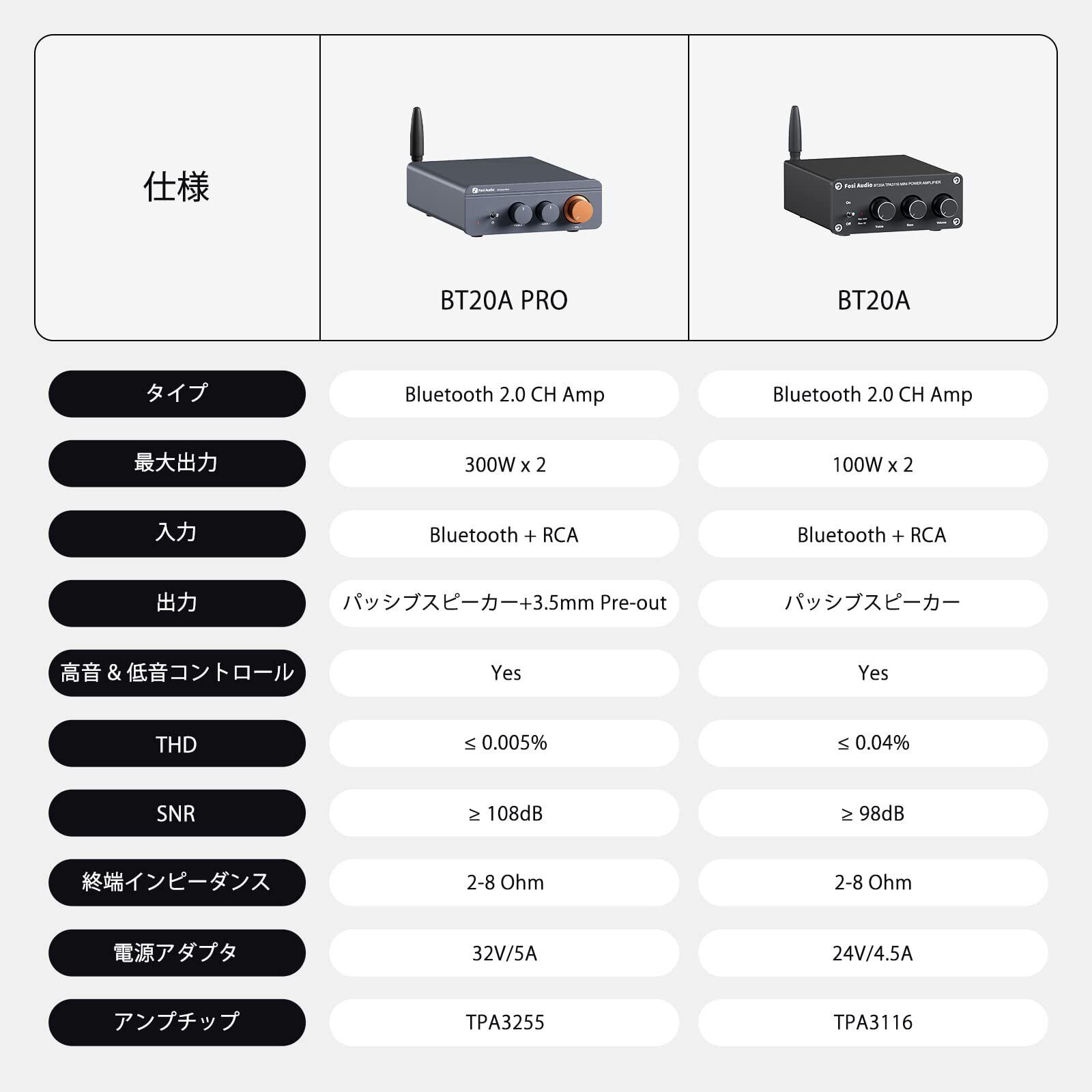 Fosi Audio BT20A Pro 300W x2 TPA3255 Bluetooth 5.0 パワーアンプ 小型 ホーム オーディオ ステレオ 2チャンネル アンプ レシーバー ミニ Hi-Fi クラスD 家庭用 統合アンプ スピーカー用 高低音/音量調整可能 オペアンプ交換可能 日本語説明書付き 32V/5A電源付き