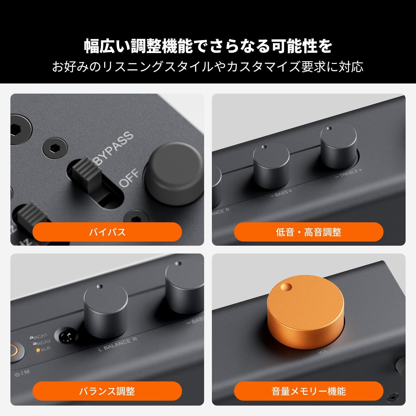【柔軟な音質調整機能】バス/トレブルコントロール(バイパス機能付き)およびL/Rバランスノブを備えており、お好みに応じた音質調整が可能です。さらに、各入力ソースごとに音量設定を記憶するボリュームメモリー機能を搭載しており、よりスマートで快適なリスニング環境を実現します。