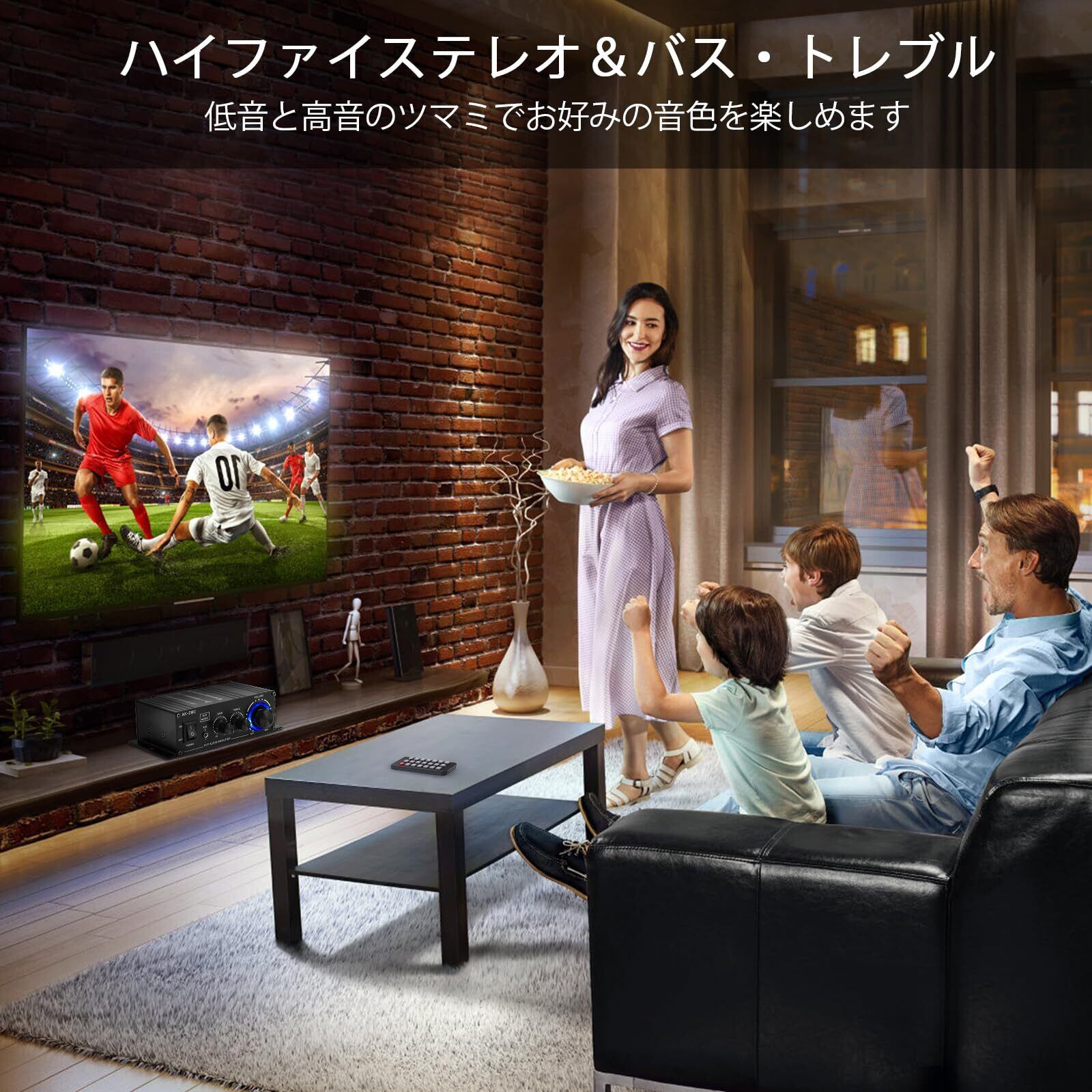 パワーアンプ Hifi ステレオ 2.0 チャンネル 2X40W オーディオアンプ デジタルアンプ 小型、低音および高音コントロール ホームシアタースピーカー用