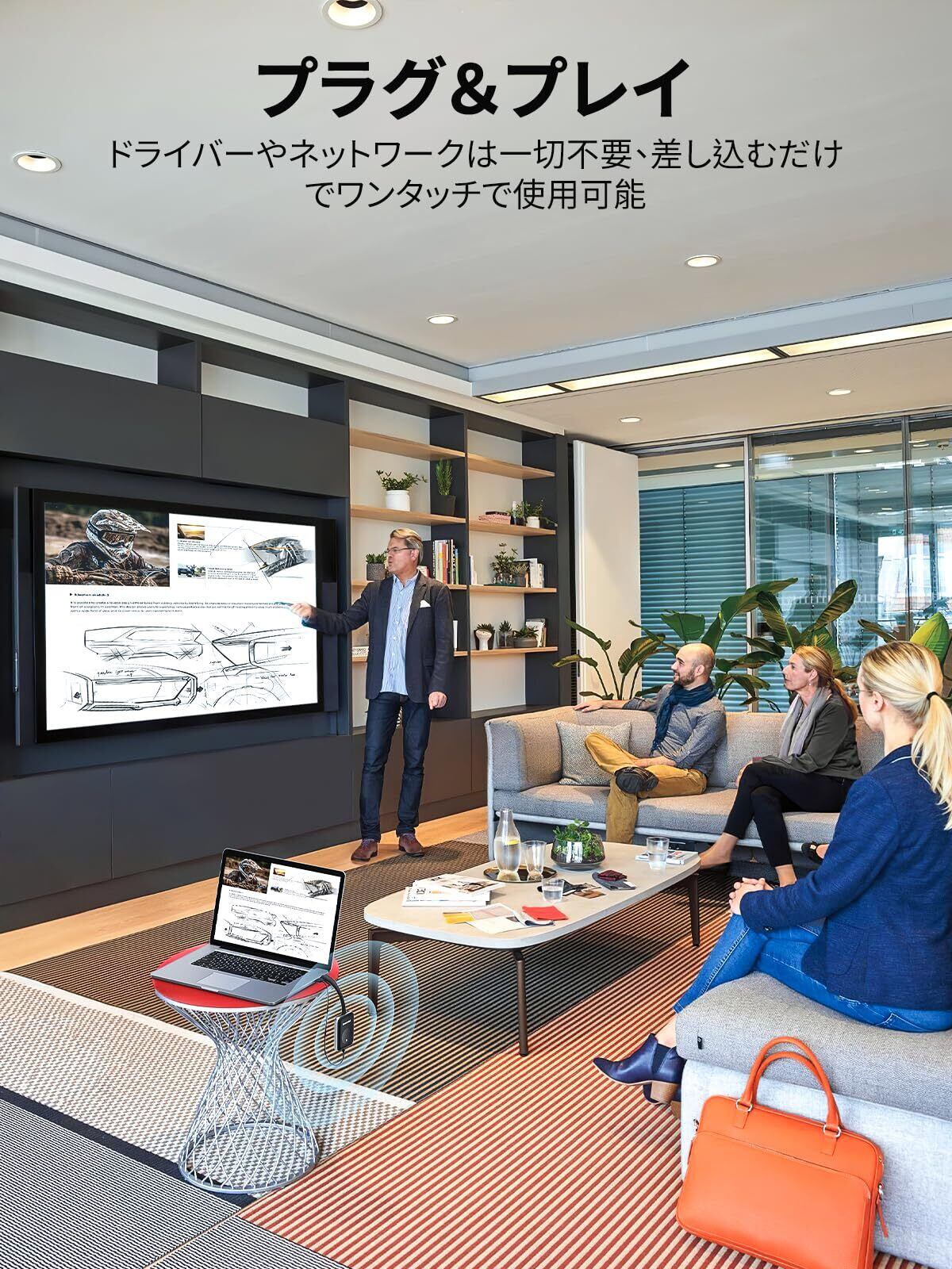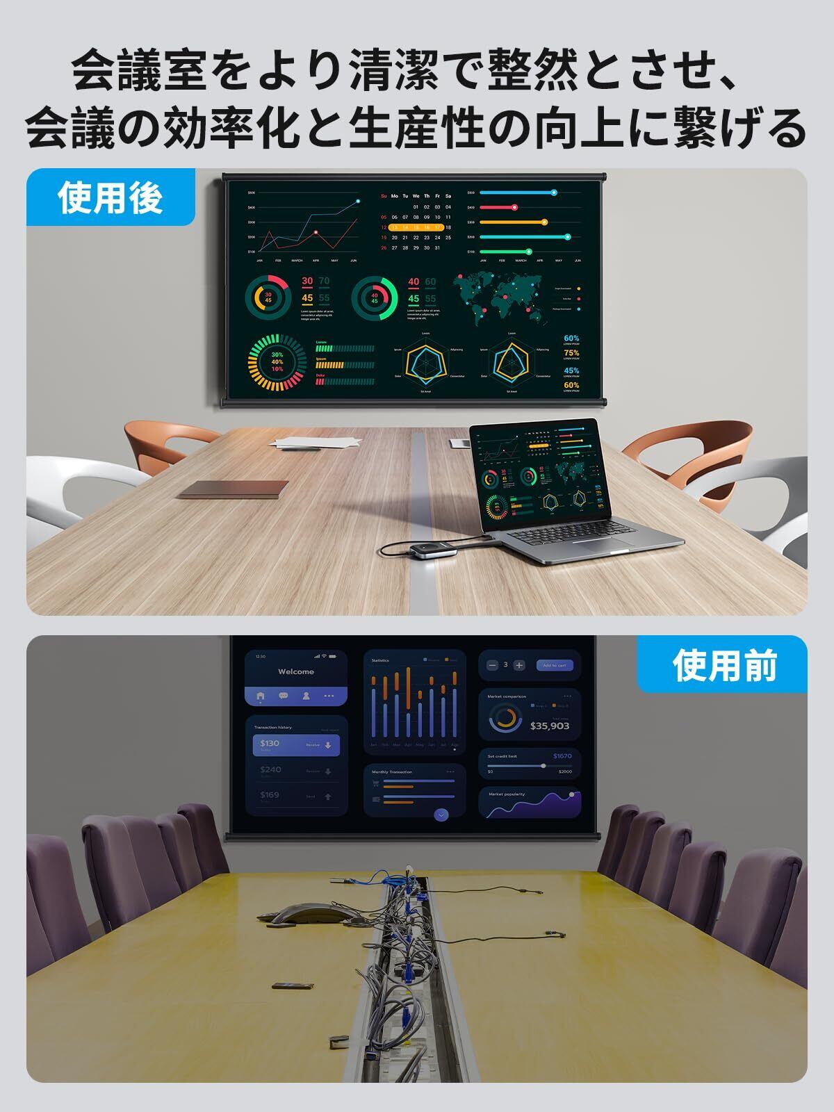 【最大50mの 無線 hdmi 安定伝送】5G/2.4GHzデュアルバンド技術を採用。障害物が少ない環境では最大50mまでのワイヤレス伝送が可能です。広い会議室や展示会でもケーブル配線の煩わしさから解放され、より整然としたデスク周りを実現します。高性能チップ内蔵で信号干渉を抑え、遅延のないスムーズな操作感を提供します。