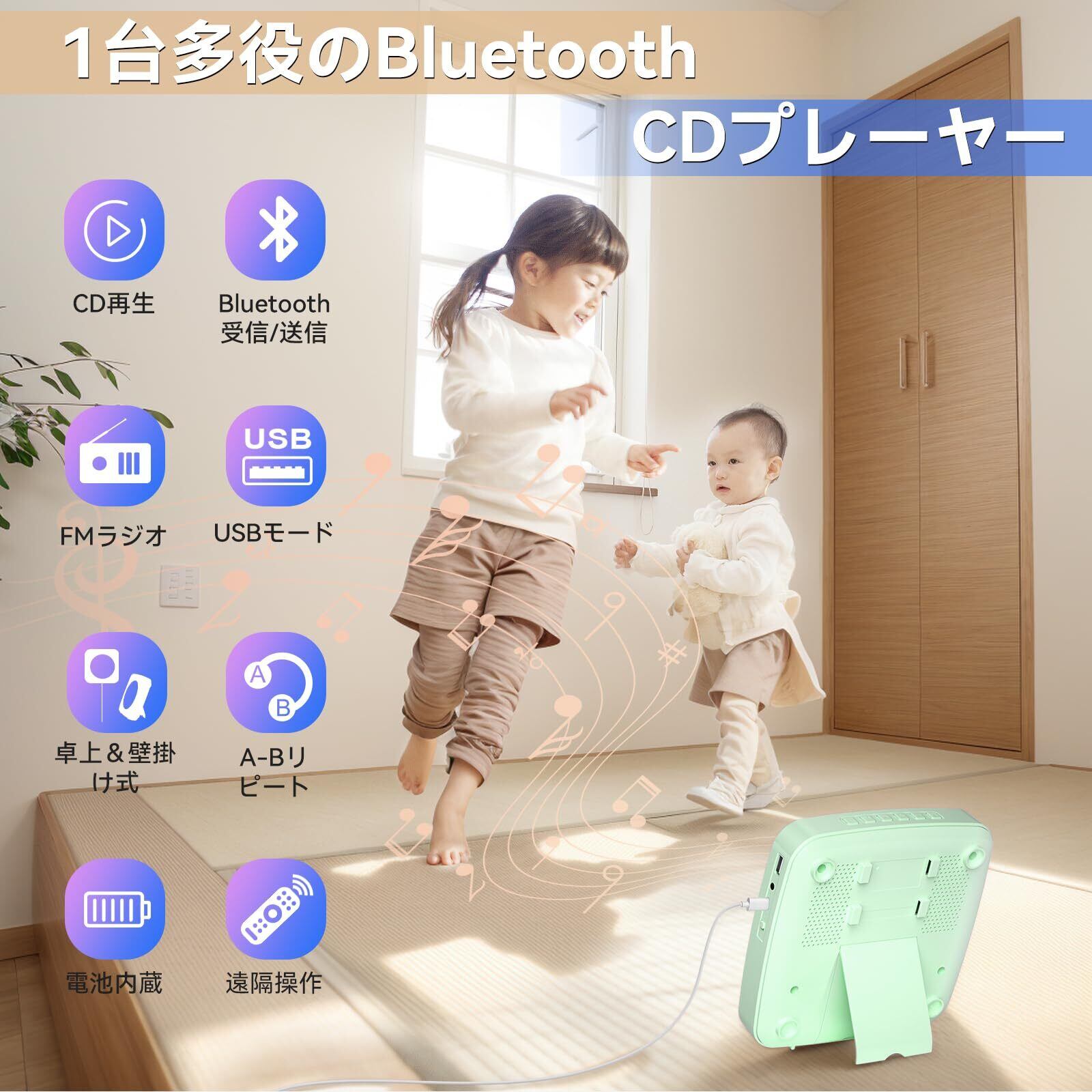 Kegaudio CDプレーヤー cdラジカセ Bluetooth 受信/送信 スピーカー内蔵 卓上&壁掛け式 CDプレイヤー 電池内蔵 USB充電式 1台多役 FM/USB対応 A-Bリピート再生 音楽再生/語学学習/胎児教育 日本語説明書付き(グリーン)