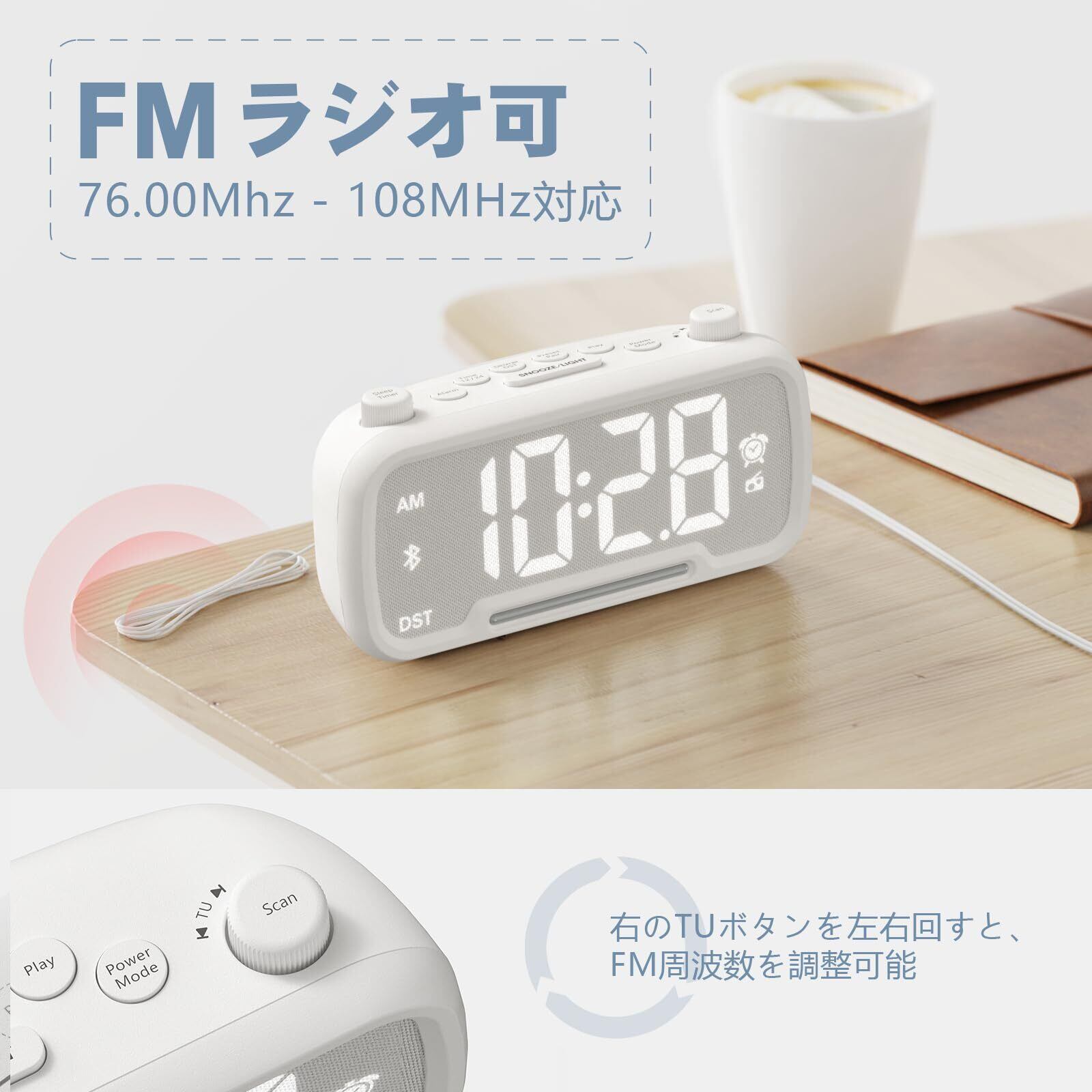 ⏰【多機能クロックラジオ】1台で時計としてもラジオとしても使うことができ、FMラジオの受信や、スマホと連携させて音楽を再生できる機能を搭載したクロックラジオです。①大きなデジタル表示ではっきり見える②ラジオ簡単自動選局(ワイドFM対応)③プリセット登録④スヌーズ機能⑤内蔵電子音やラジオの音を選べる目覚まし機能⑥12/24時間制表示切替⑦デジタル表示の明るさを切替⑧スピーカー機能(BT)⑨スマホ2台を同時に充電することが可能。ご注意:本製品は電池式ではございません。電源への接続が必須となりますため、ご利用環境にご注意いただき、ご購入前によくご検討ください。よろしくお願いいたします。
