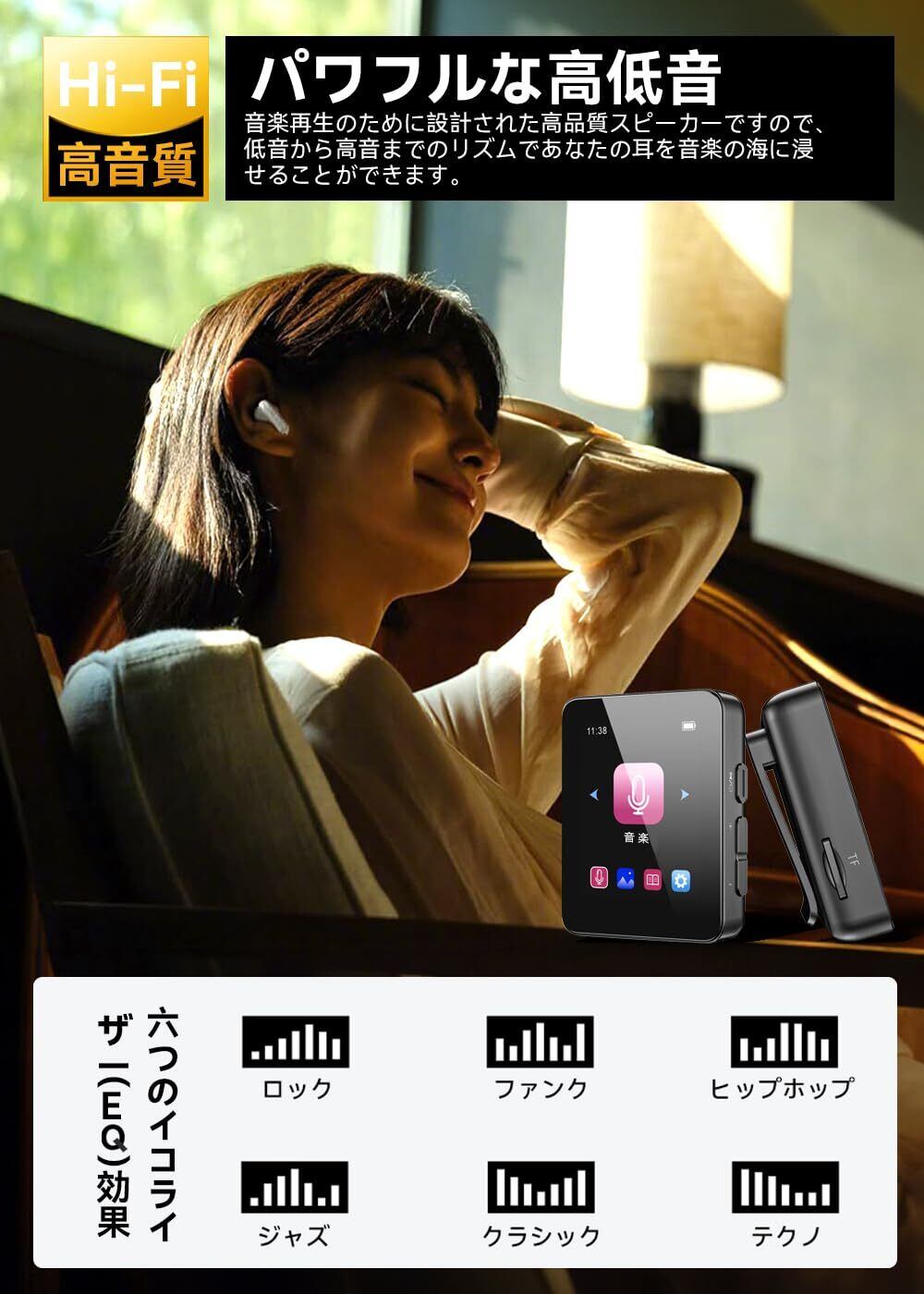 GOVVOM MP3プレーヤー Bluetooth5.3 【1.8インチフルタッチスクリーン クリップ付 ライン入力録音】 ミニ音楽プレーヤー 32GBのSDカード付 128GBまで対応 6種イコライザー HIFI音質 軽量 コンパクト 多機能 デジタルオーディオプレーヤー 倍速再生 リピート機能 録音/電子ブック/画像閲覧/アラームなど搭載 通勤/運動/語学学習/楽器練習 日本語説明書