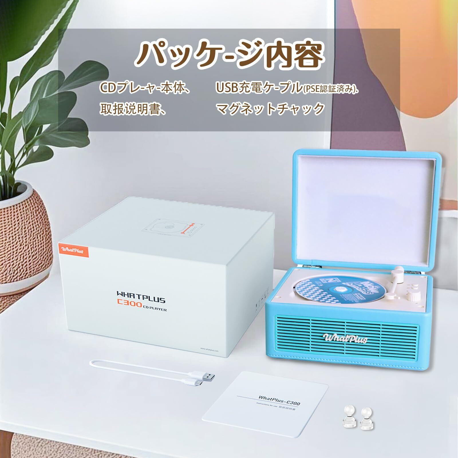 WhatPlus CDプレーヤー ワイヤレス対応 スピーカ内蔵 2000mAhバッテリー搭載 デスク イヤホン/AUX-IN/TFカード ストレス解消 (ライトブルー)
