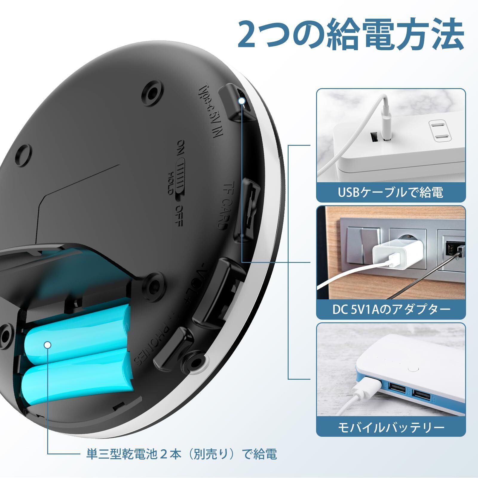 Gueray CDプレーヤー ポータブル Bluetooth 超軽量 cdプレイヤー 語学学習 倍速再生 リピート機能 EQ音声効果 Micro SDカード対応 AUX機能 USB給電/乾電池 CDディスク MP3 CD-R CD-RWなどに対応 日本語説明書付き ブラック
