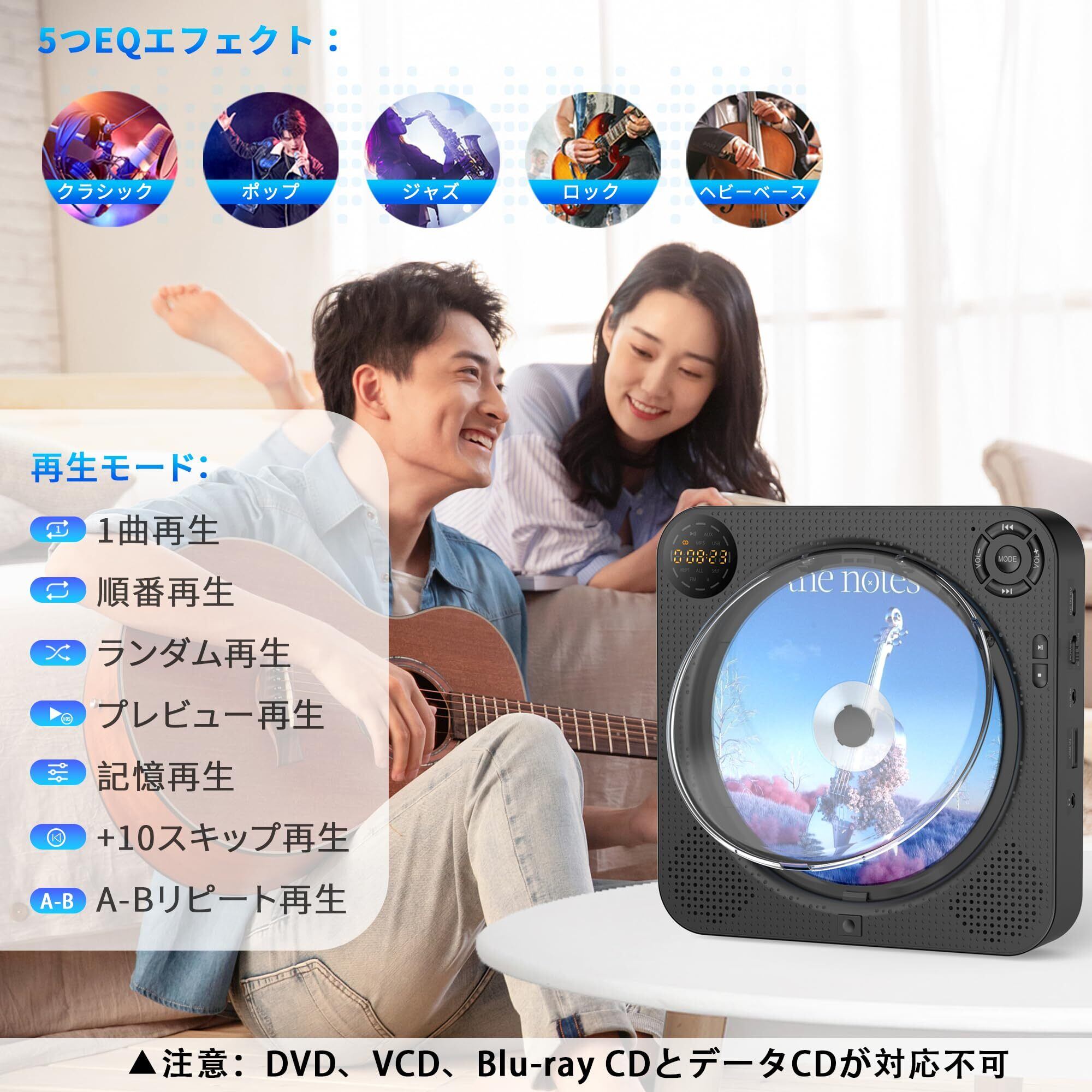 CDプレーヤーBluetooth受信/送信 スピーカー内蔵ポータブルCDプレーヤー壁掛け&卓上置き式 多機能 FMラジオ/AUX/USB再生対応 A-Bリピート再生・ +10スキップ機能 ・ 5EQエフェクト 音楽鑑賞/語学学習/胎児教育 日本語説明書付き