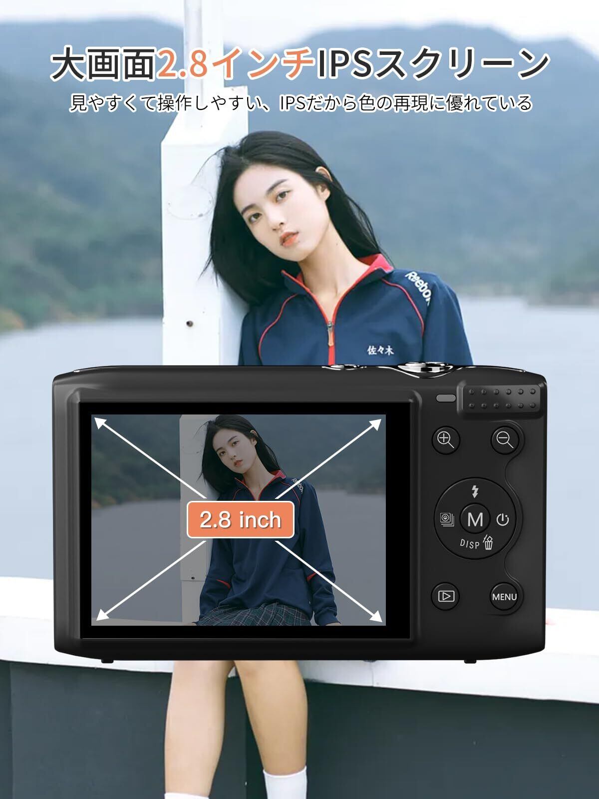 AiMike スマホに送れる デジタルカメラ 5K デジカメ WIFI転送機能 7200万画素 64GBマイクロSDカード付き 16倍デジタルズーム オートフォーカス機能 LEDライト ウェブカメラ 2.8インチ大画面 バッテリー2枚 コンパクト 子供や初心者向け 子供の日 クリスマスプレゼント ダーク・ブラック