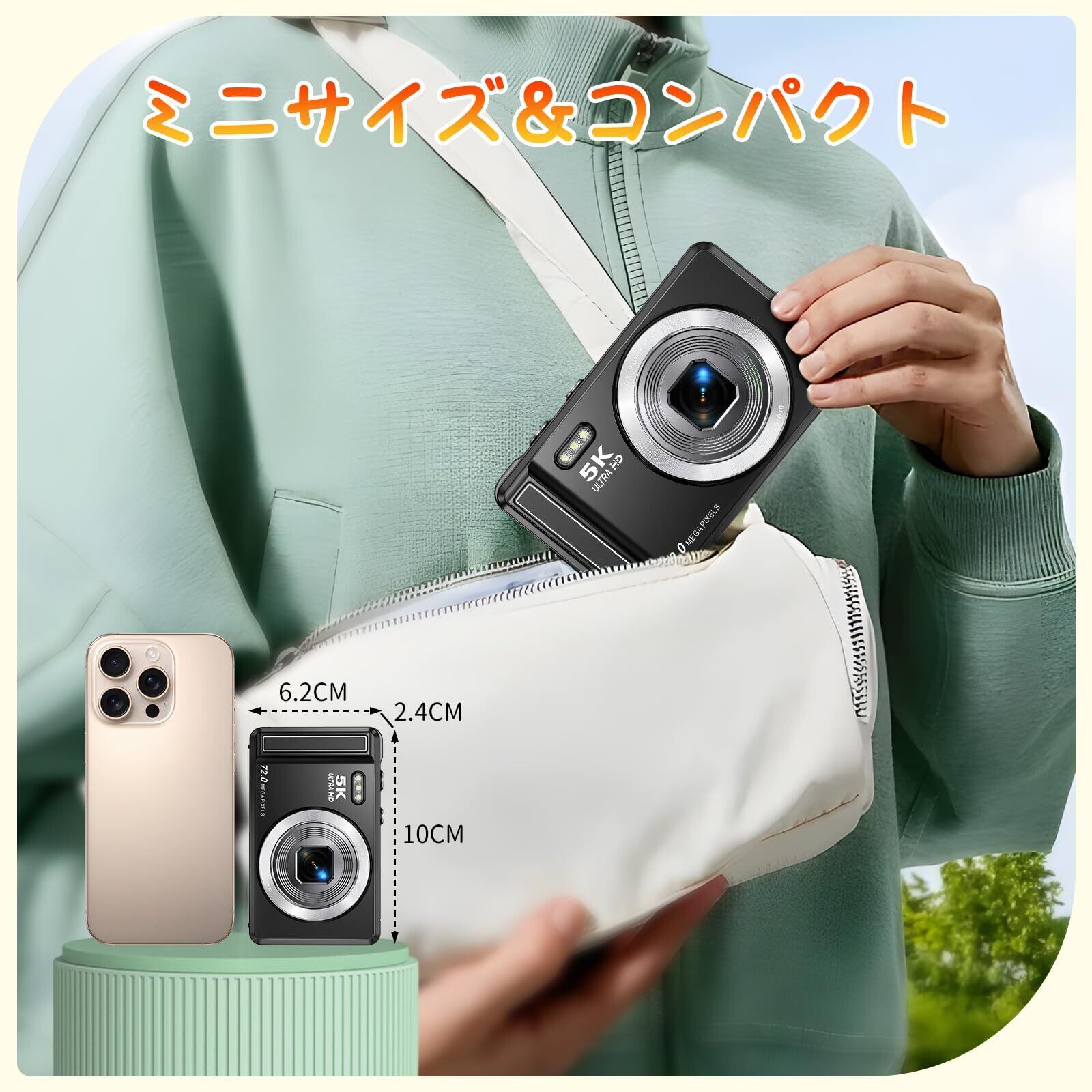 5K デジカメ 7200万画素 2.8 インチスクリーン AFオートフォーカス 16 倍デジタルズーム デジタルカメラ 定時撮影 内蔵フラッシュ 自撮り マイクロSDカード付き ウェブカメラ コンパクト VLOG 軽量 携帯便利 初心者 旅行 カメラ