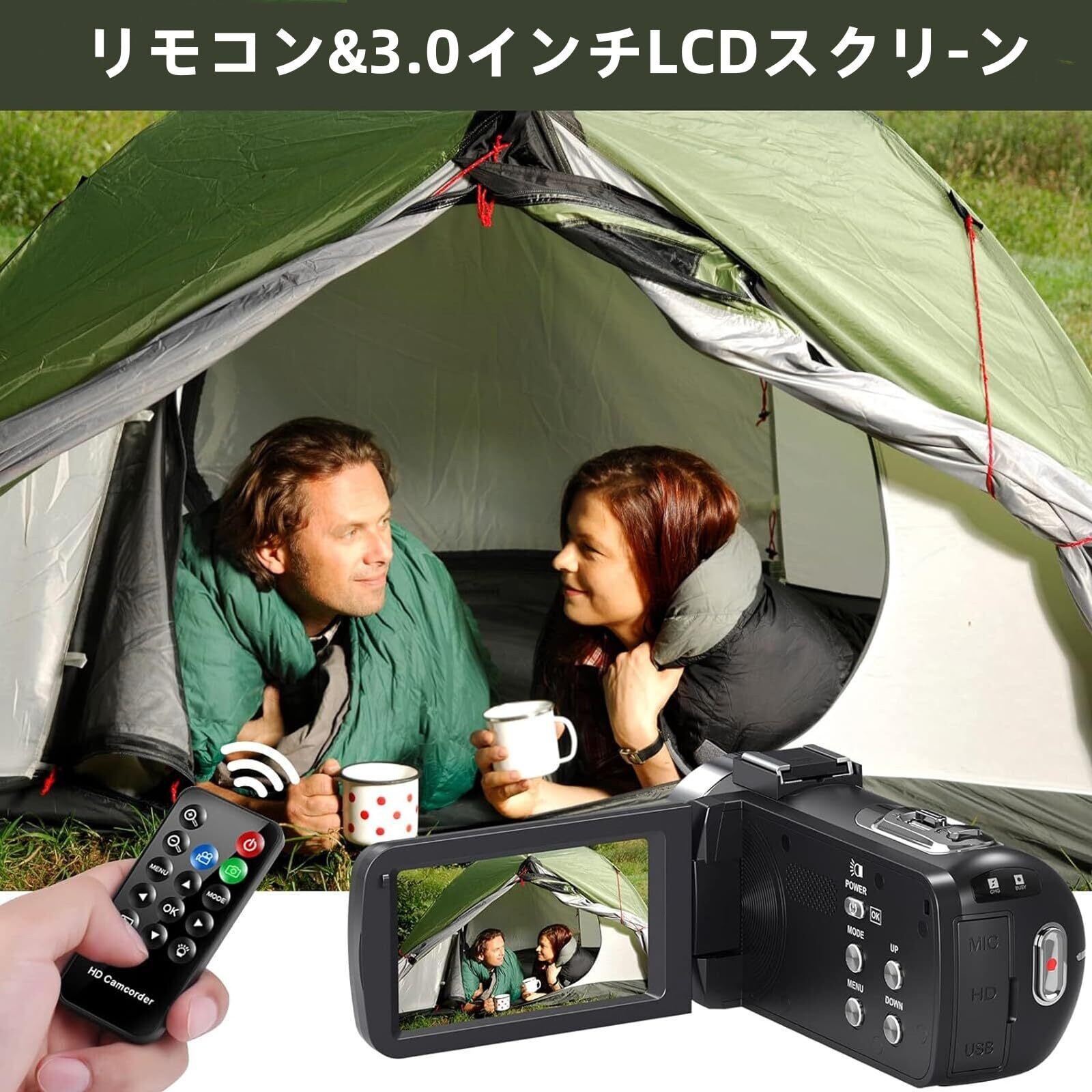 ビデオカメラ 4K30FPS 80MP 18Xデジタルズーム LEDフィルライト機能付き 3.0インチ LCDスクリーン Vlogカメラ YouTube用ウェブカメラ一時停止機能 リモコン付き バッテリー2個日本語取扱説明書8000万画素数64GBのSDカード付属