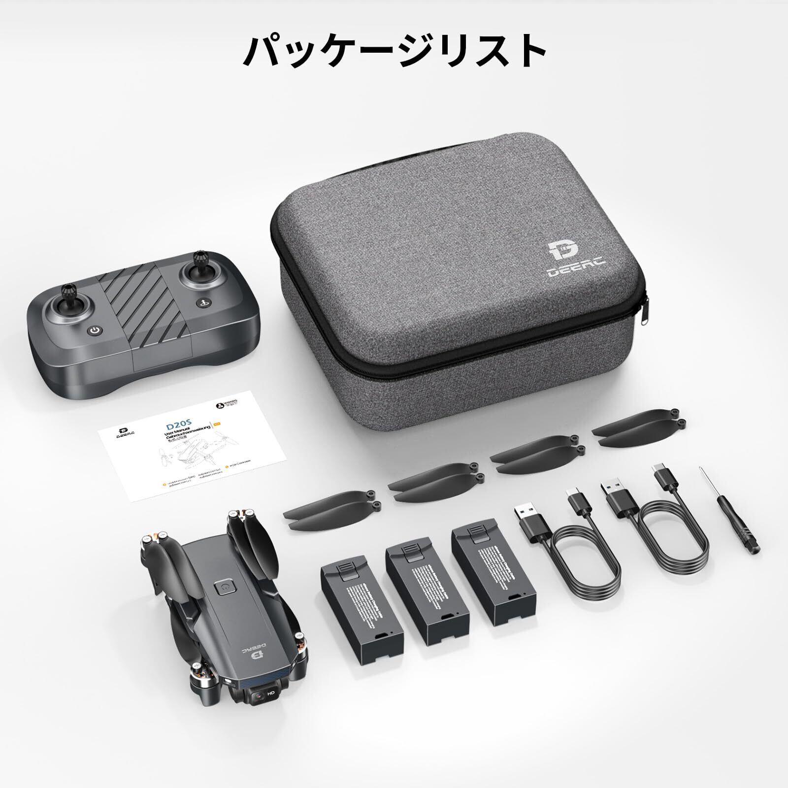 ✈【パッケージリスト】機体*1、送信機*1、収納ケース*1、バッテリー*3、予備プロペラ*4、充電ケーブル*2、ドライバー*1、日本語説明書*1。