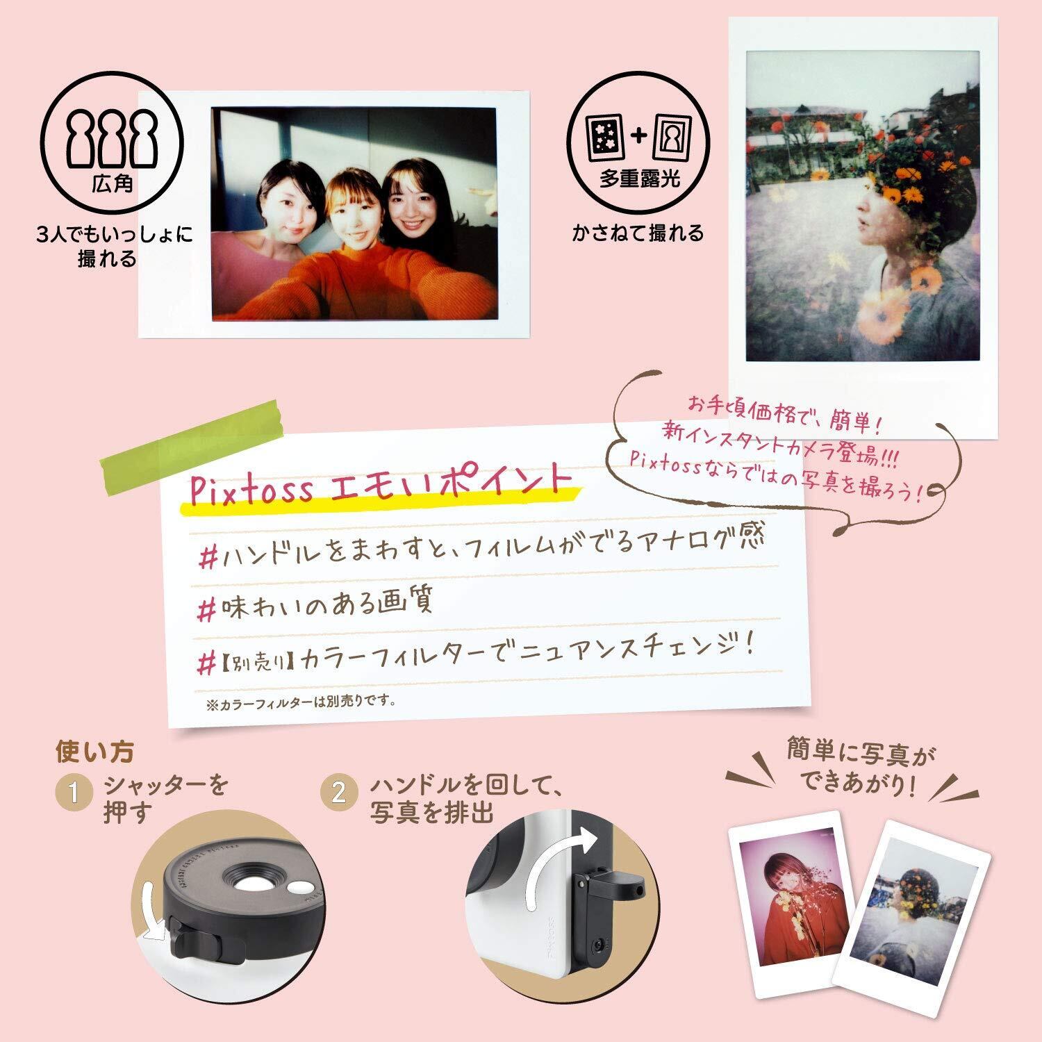 pixtossはピント合わせや明るさの調整などをいっさい行わない、インスタントカメラです。気の向くままにカメラを構えてシャッターを切る…それだけであなただけの写真が撮れてしまいます。