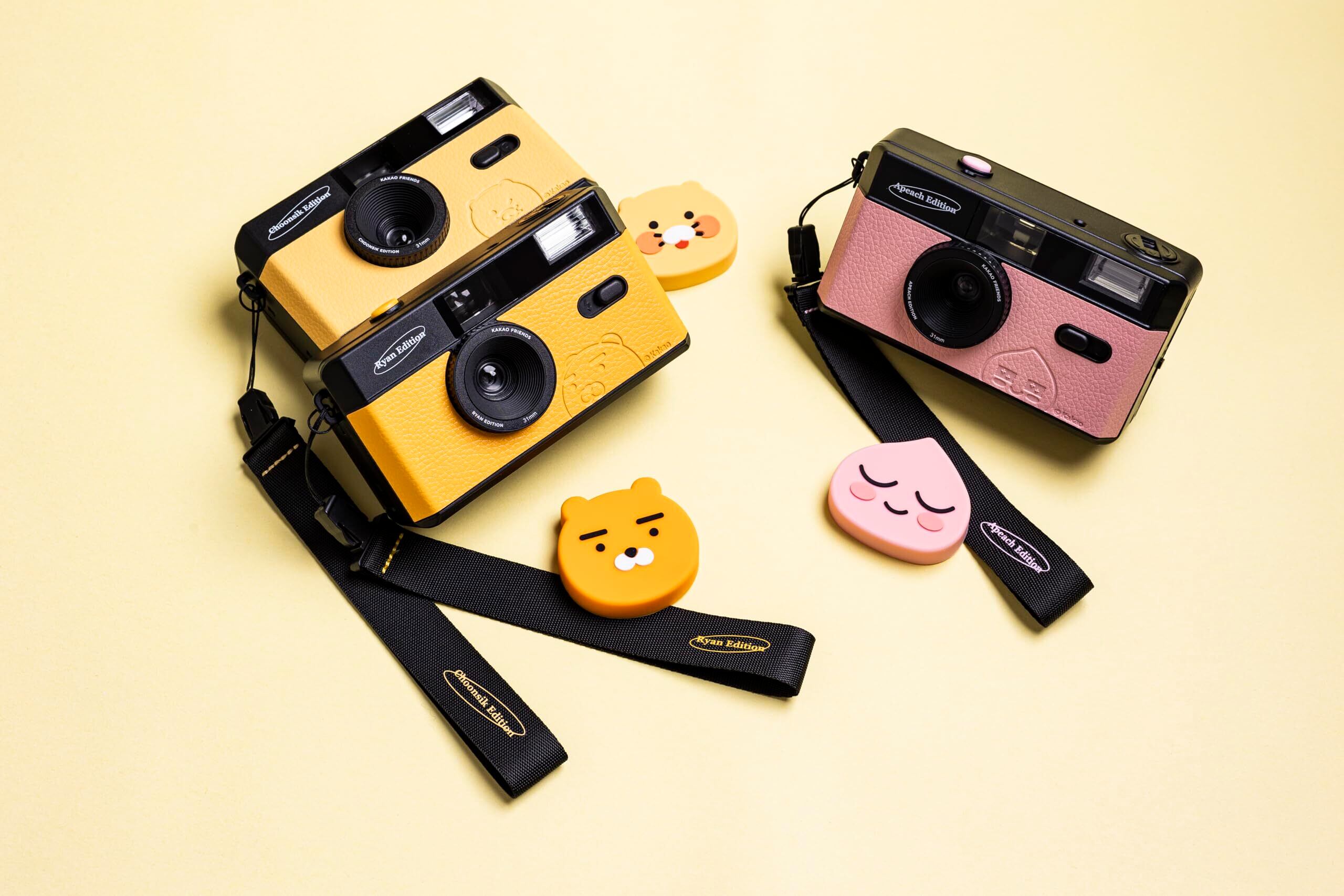 高品質な画像:かわいらしいカカオフレンズのフィルムカメラで思い出を残しましょう。キャラクターレンズキャップが付いていて、楽しさと保護を追加します。
