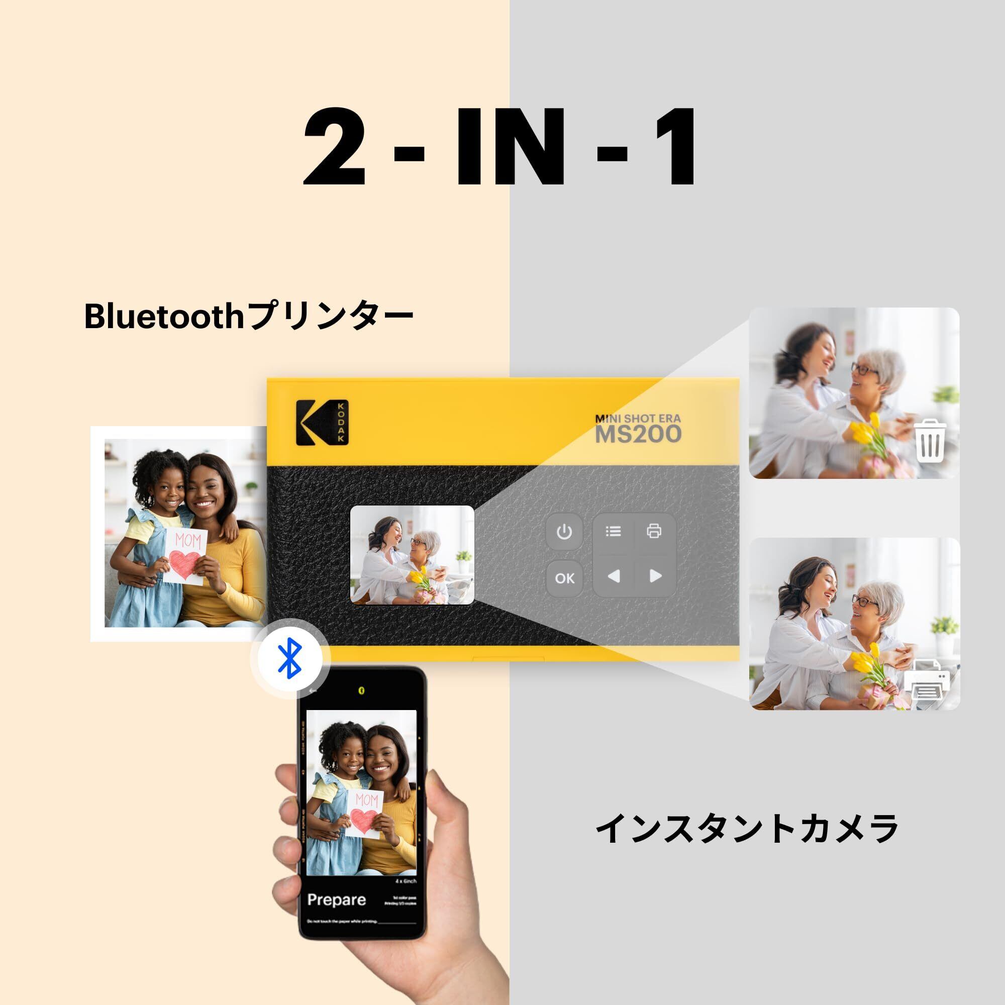 KODAK Mini Shot 2 ERA 4PASS 2-in-1 チェキカメラ&スマホプリンター(2.1x3.4")+8枚、ブラック (カメラ + 68枚入, ブラック)