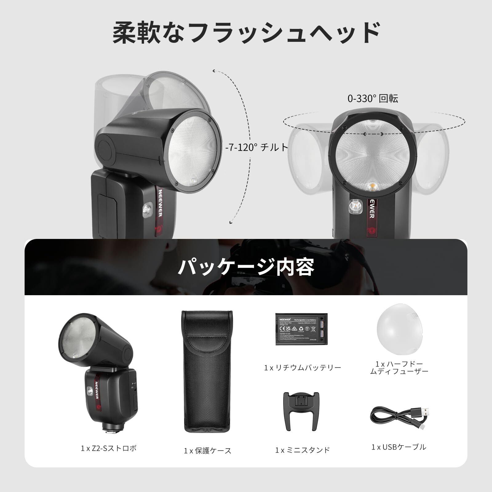 NEEWER Z2-S 2.4G TTLラウンドヘッドフラッシュストロボ スピードライト ディフューザー付き アップグレードされたUI 2つの調整可能なモデリングランプ TTL/MクイックTCMスイッチ 76Ws 1/8000s HSS 7.2V/3000mAhバッテリー 600フルパワーフラッシュ